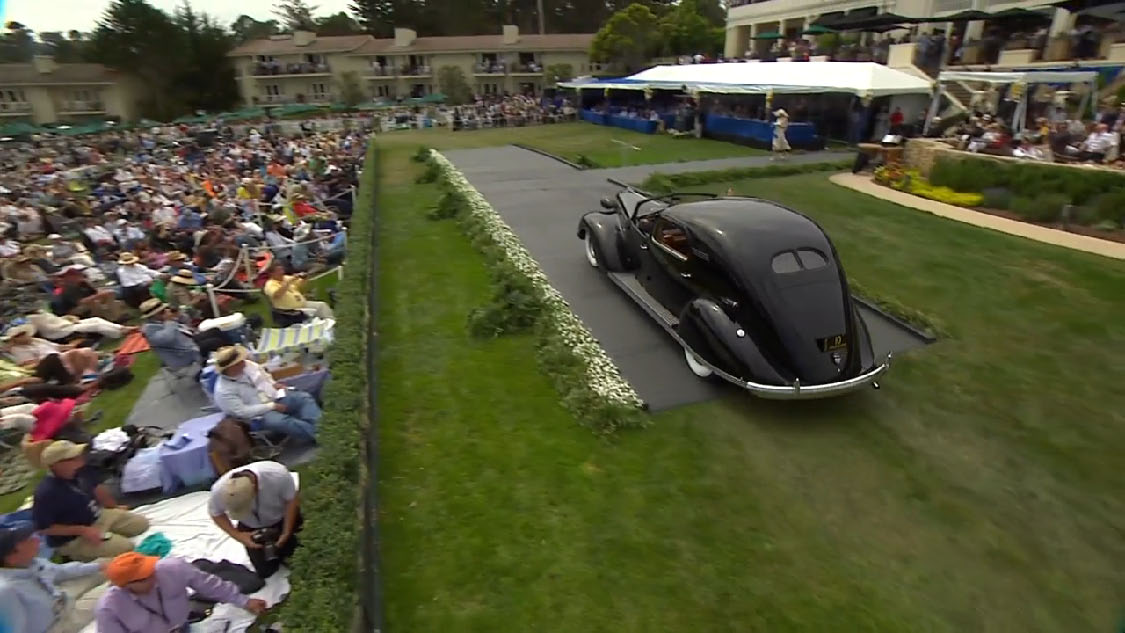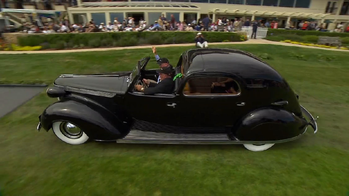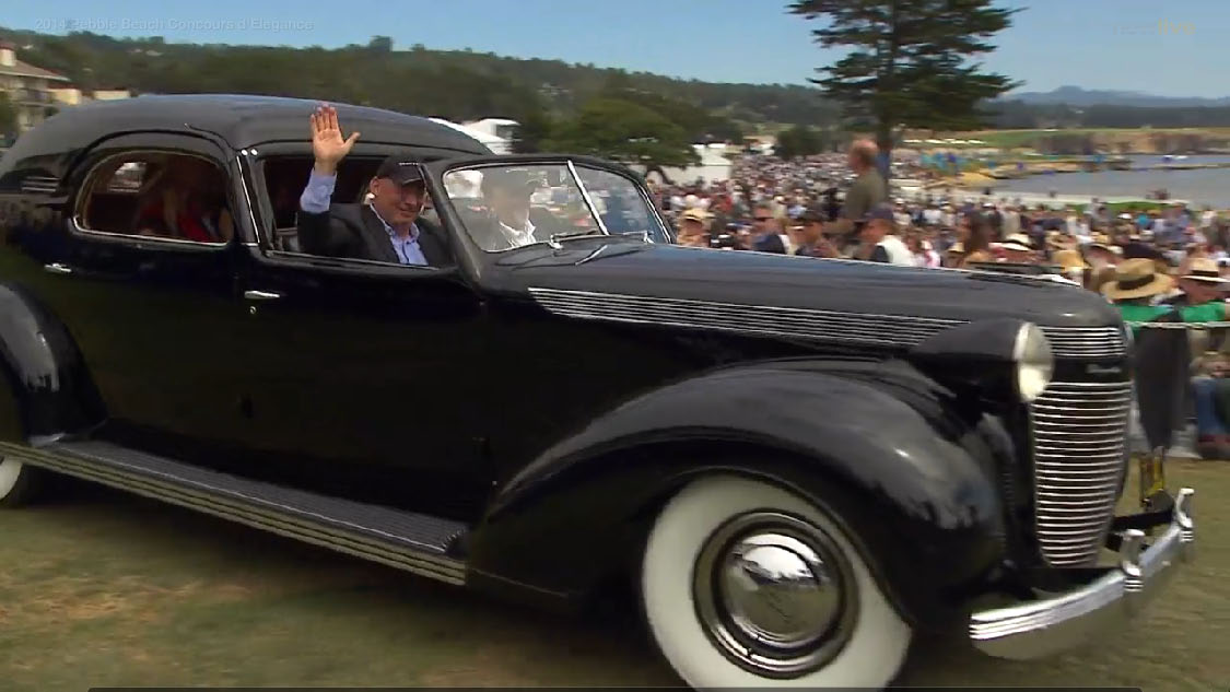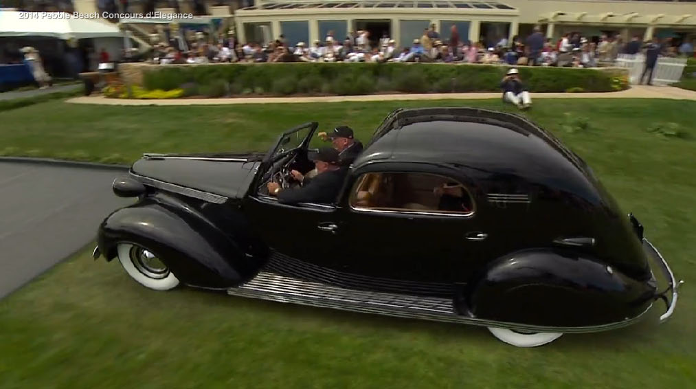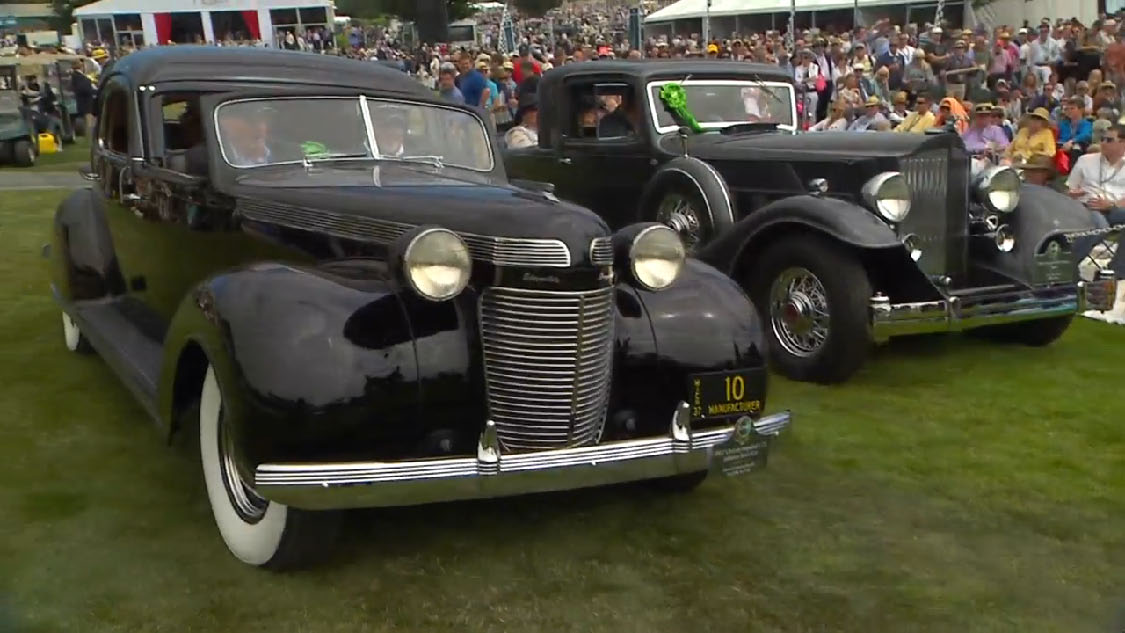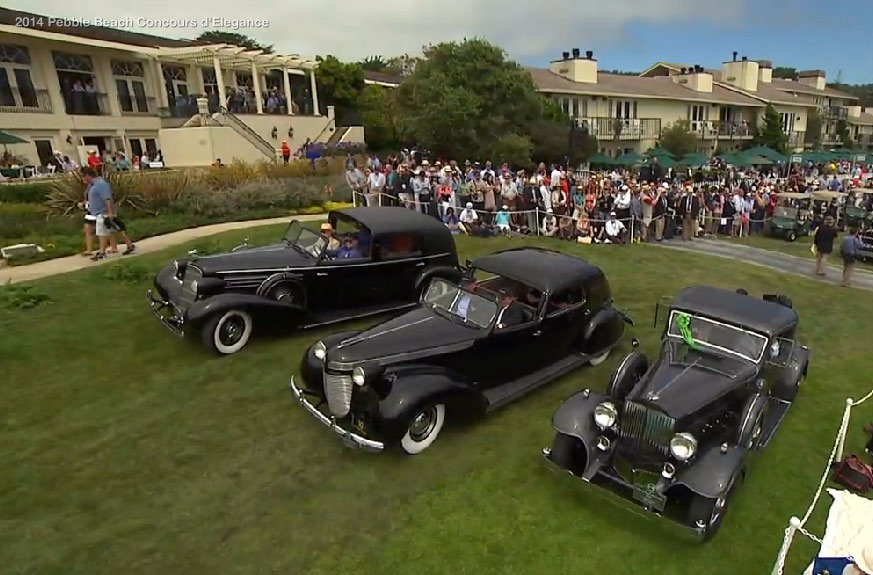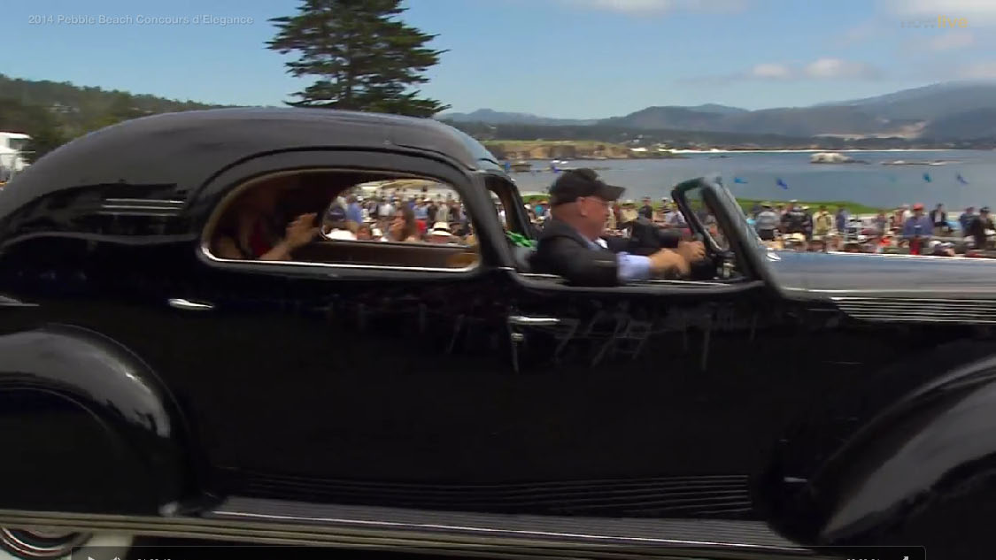 Pebble Beach Concours d'Elegance has posted the entire three-hour awards ceremony of the 2014 event on its website. The American Classic Closed awards ceremony can be seen beginning at th 59 minute mark of the video. Click on the seek timeline. (0:59 minutes to 1:03 minutes).