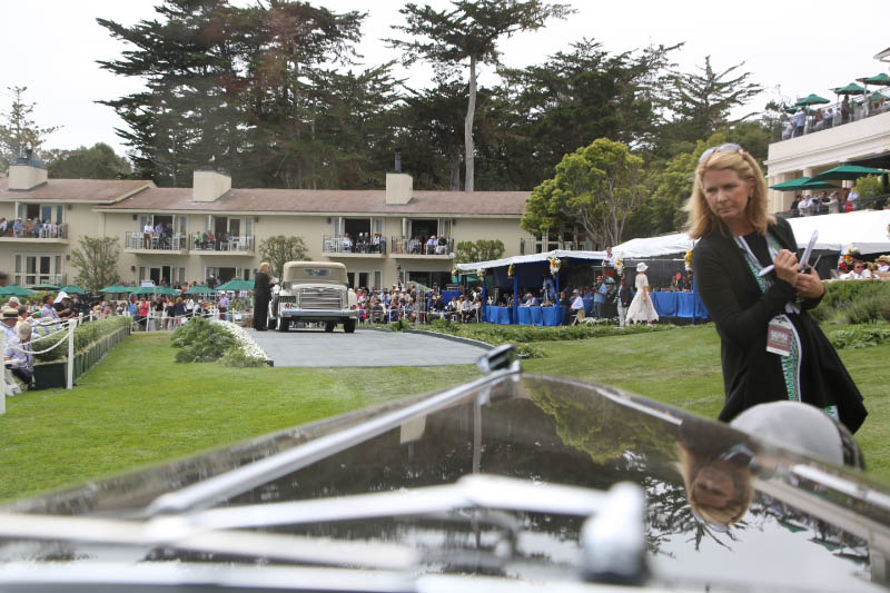 Sandra Button, Chairman of the Pebble Beach Concours, checking out Chrysler's Chrysler before the places were announced.