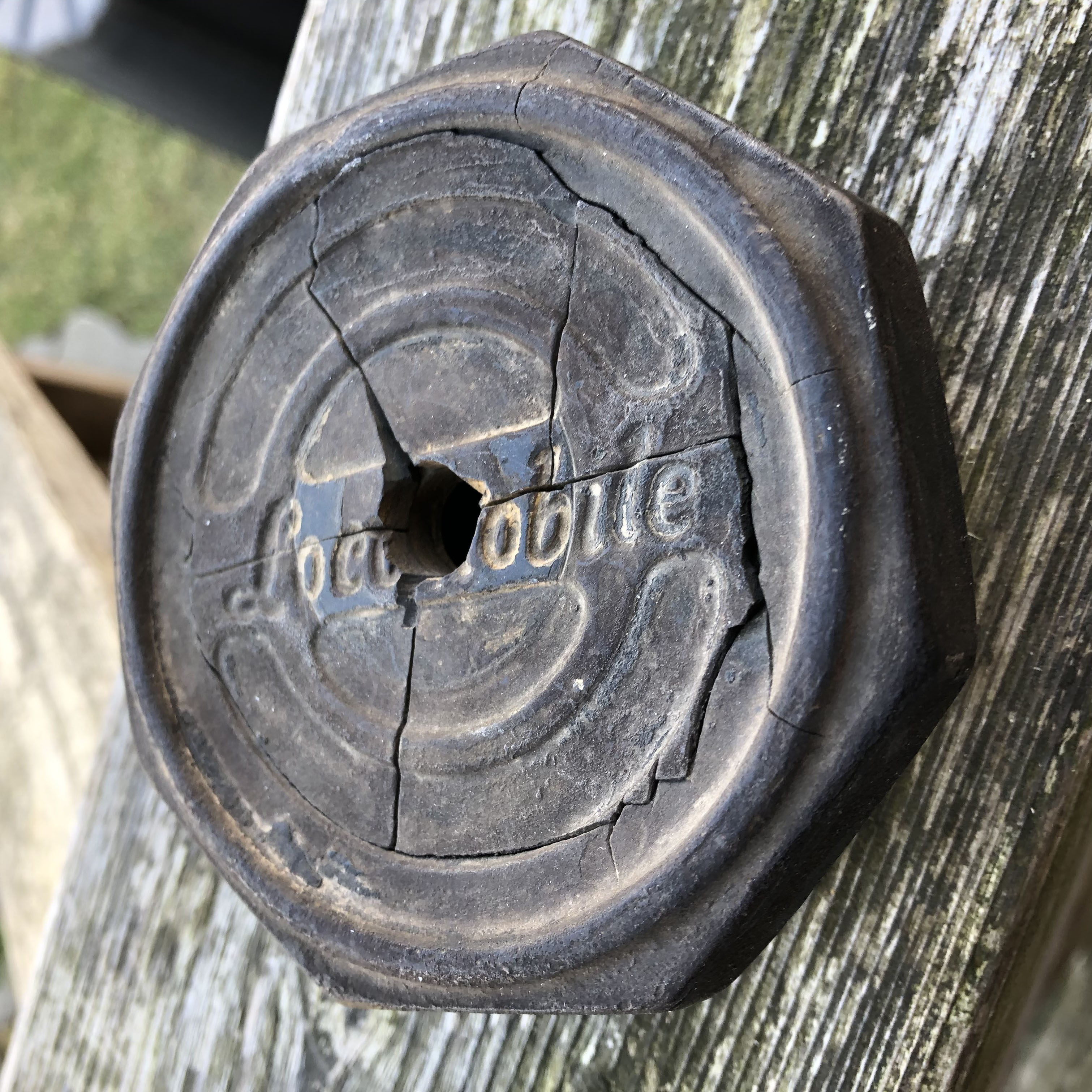 Walt Gosden: Photo of an unrestored Locomobile radiator cap ( for the radiator I have ) given to me by a friend in Ohio who owns a Locomobile of this era (bakelite black cap mounted to a metal threaded base , the hole in center drilled for a motometer (the motometer that was best known was made in Long Island City for decades and the owner of the factory business lived in Jericho, NY in what became the Main Maid Inn - Boyce was the brand name.