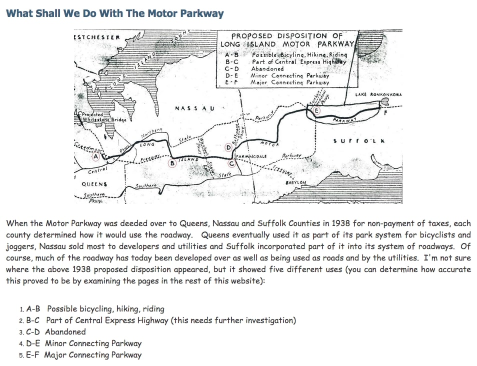 Kleiner's Kolumn:Nassau County's Plans for the Motor Parkway After It Closed in 1938