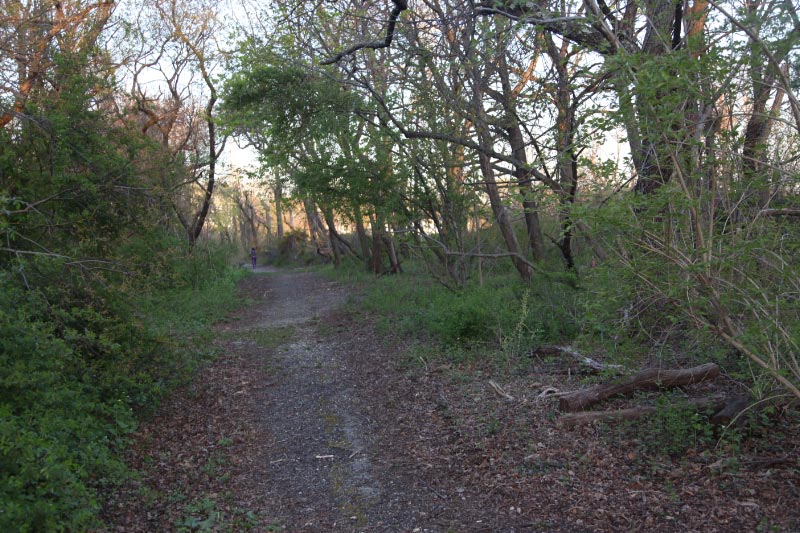 East of Clinton, however, the roadway still exists, from the top of the remaining bridge embankment, past the north end of Raymond Court, almost to the exit roadway from Roosevelt Field at Stewart Ave. Accessed from Clinton or Raymond Ct., this section is now a bucolic walk in the woods, which one would scarcely believe is in the middle of the bustle surrounding it. It’s hard to imagine that once there were no trees at all. Efforts have been made to turn it into a Village walking trail, so far to no avail.