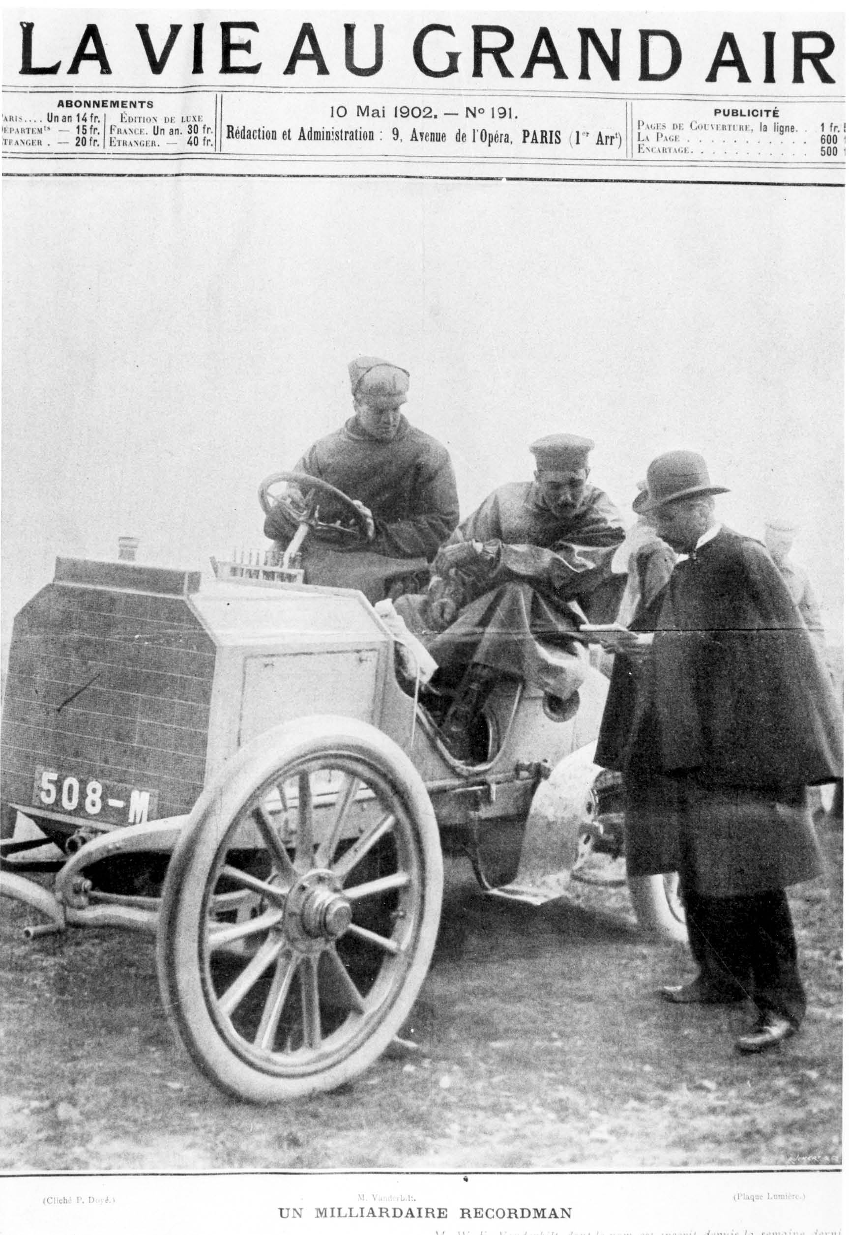 On May 15, 1902, Vanderbilt was leading the 537-mile Circuit du Nord Race (Paris-Arras-Paris) when his 40-HP Mercedes broke down due to a broken sprocket wheel.