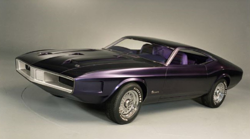 Hitting the auto show circuits in 1966, this concept Mustang clearly showed where the first-generation design was headed. The rectangular headlights weren’t used, and thankfully the massive side scoops didn’t make it to production either. The rest, however, is almost spot-on for what the world would see on the 1969 Mustang Mach I.