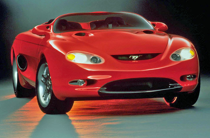 While the factory-built two-seater Mustang never transpired, the 1993 Mach III concept featured all kinds of design cues that would surface on the fourth-generation SN95 Mustang in 1994. The narrow grille opening, hood vents, and side scoops appeared on the production model, albeit in slightly tweaked fashion.