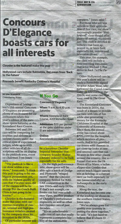 1937 Chrysler’s Chrysler Honored at the 2016 Keeneland Concours d’Elegance