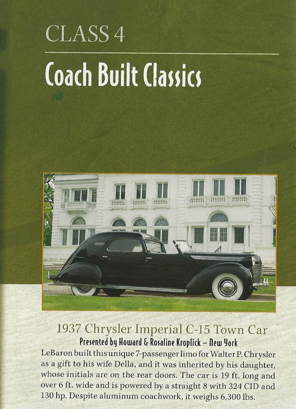 1937 Chrysler's Chrysler was honored with the prestigious Judges Choice Award