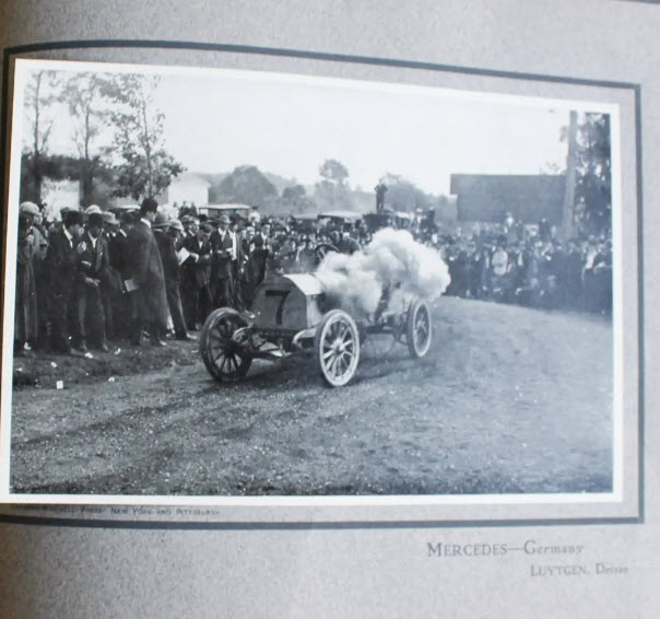 Thank you, Howard, for this look at a great book-find at Hershey! Looks like that’s starter Fred Wagner putting himself “on the line” waving in Louis Wagner as #10 raced over the finish line, in 1906. See Fred’s story at “Residence of the Starter of Five Vanderbilt Cup Races—Fred Wagner—Rediscovered in Smithtown” on VCR at https://www.vanderbiltcupraces.com/blog/article/the_residence_of_the_starter_of_five_vanderbilt_cup_races_rediscovered_in_s