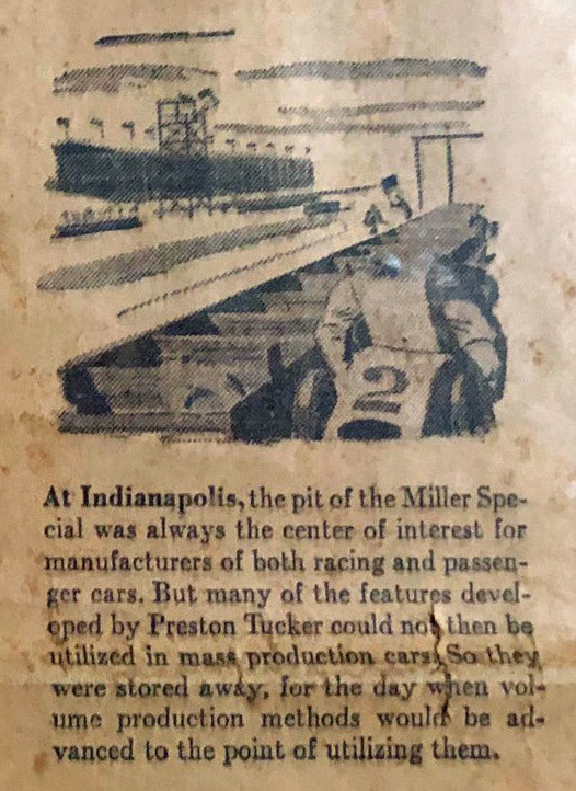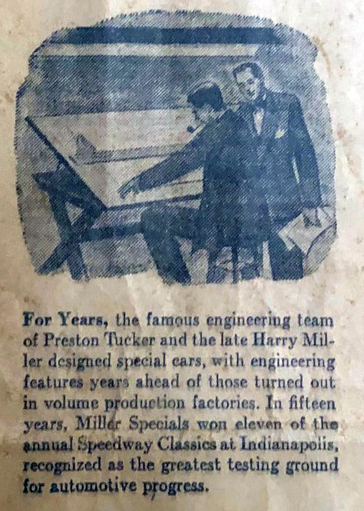 The famous engineering team of Preston Tucker and the late Harry Miller