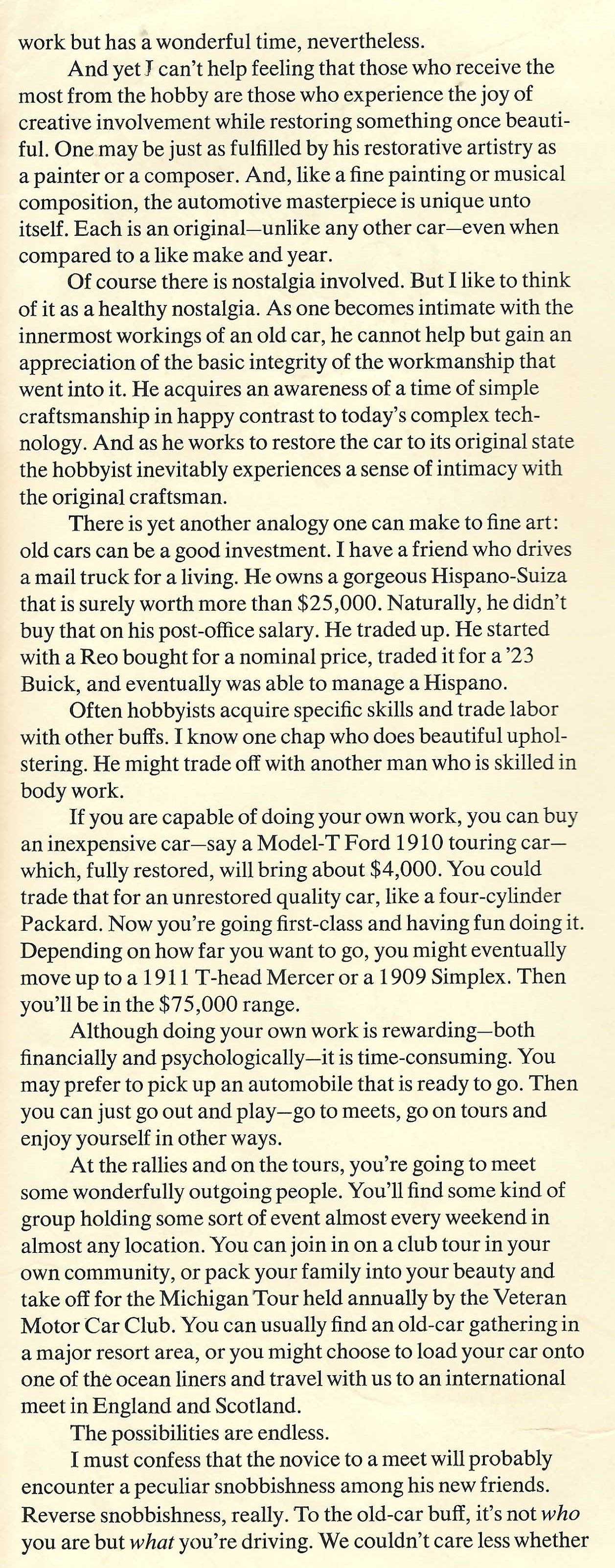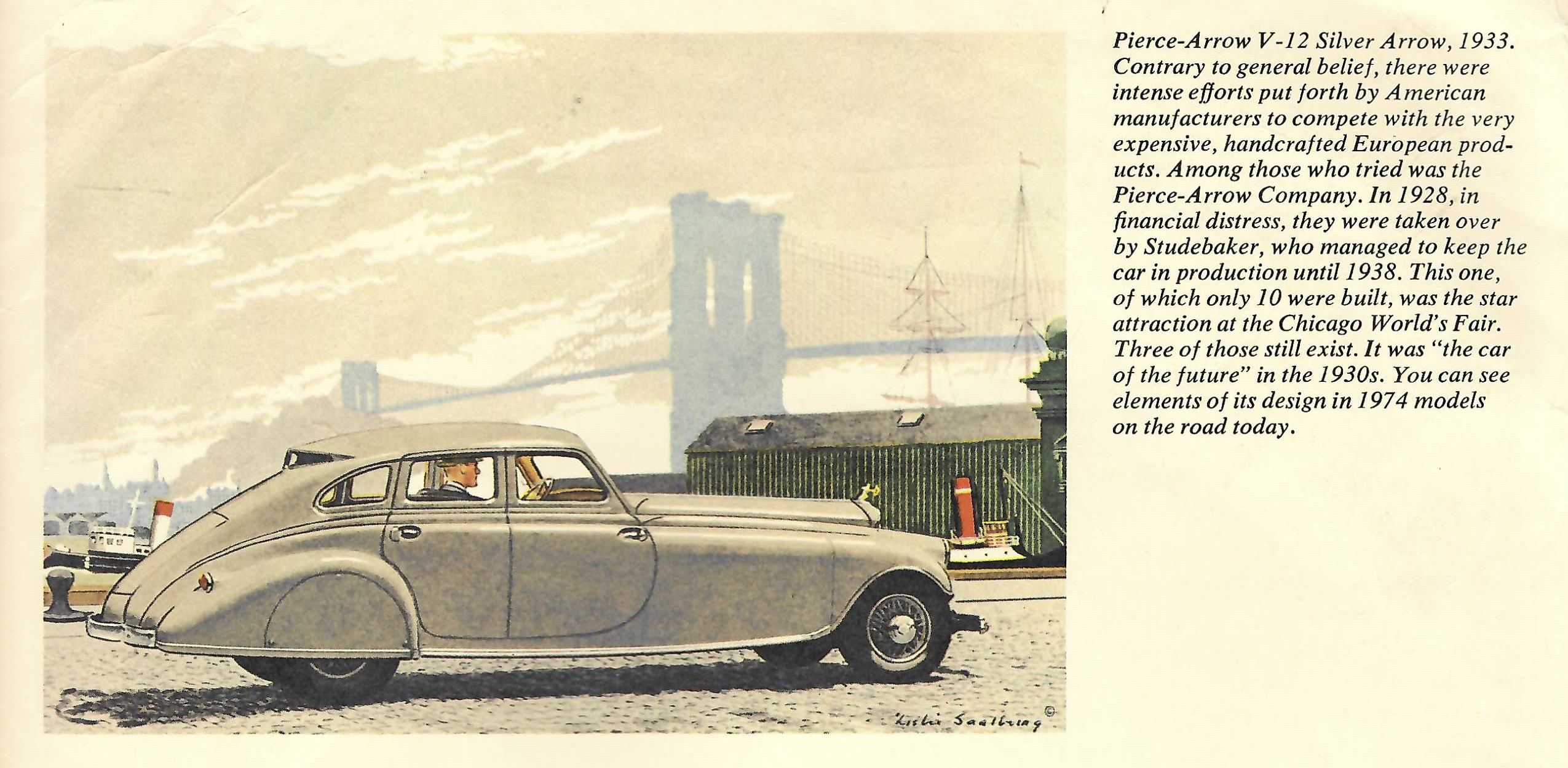 Aside from Clark's usual wonderful writing, each page of the 1974 brochure had a short illustration and overview of Clark's opinion of some of the greatest automobiles ever built.