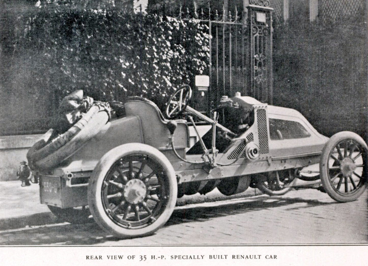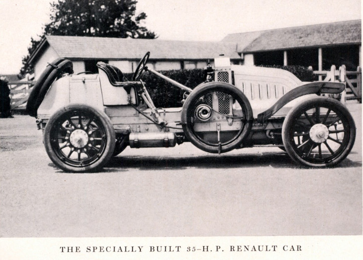 The Renault driven by Lewis Strang finished 2nd in the 1908 Motor Parkway Sweepstakes.