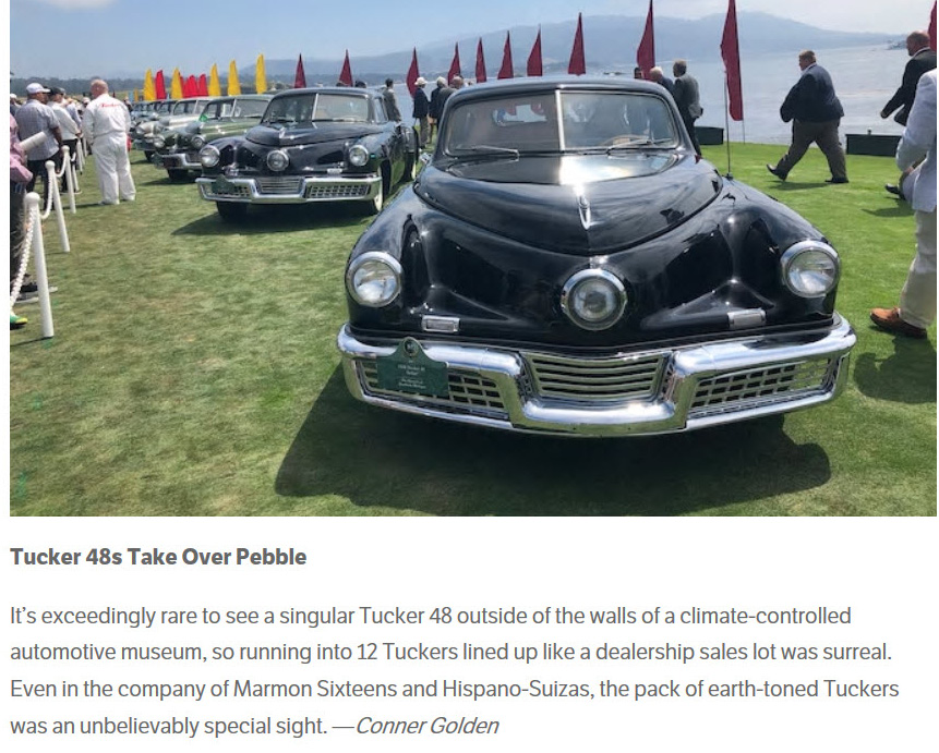 Automobile Magazine polled its editors and contributors for their favorites at the 2018 Pebble Beach Concours d'Elegance. "Even in the company of Marmon Sixteens and Hispano-Suizas, the pack of earth-toned Tuckers was an unbelieveably special sight."