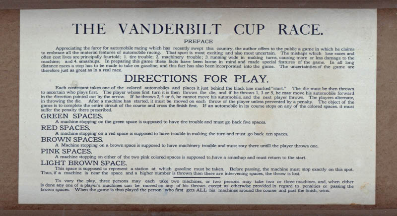 One of my favorite pieces of Vanderbilia that I own is a complete set of the 1907 board game The Vanderbilt Cup Race.