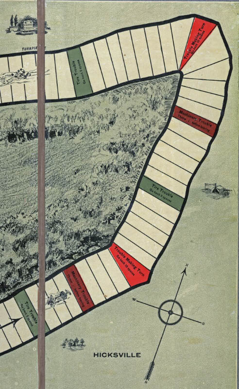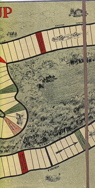 Compare the above board withe the official map ot the "Third Contest of the William K. Vanderbilt, Jr. Cup". Note the spelling of the "Manhassett Turnpike" was incorrect in both the map and board game.
