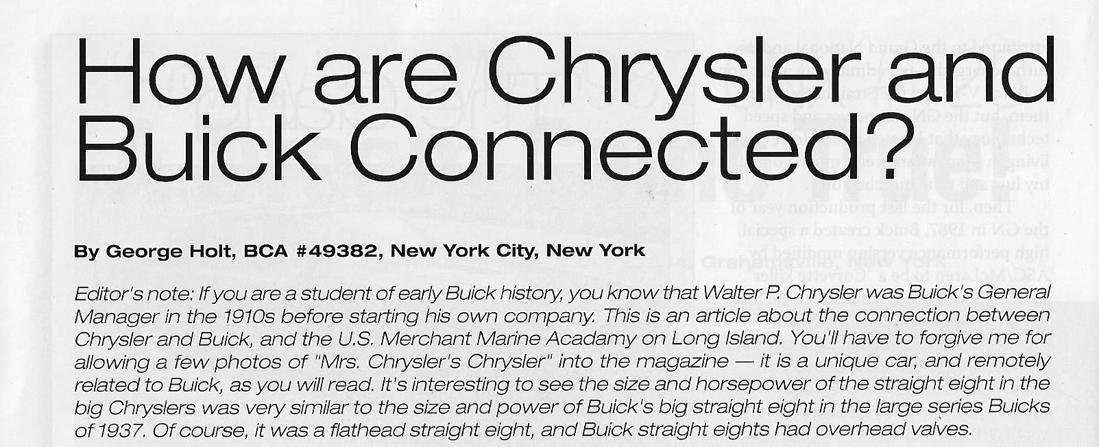 Chrysler's Chrysler was featured in the August 2019 issue of the Buick Bugle. George Holt links Walter P. Chrysler to both automobile companies and my favorite Chrysler.