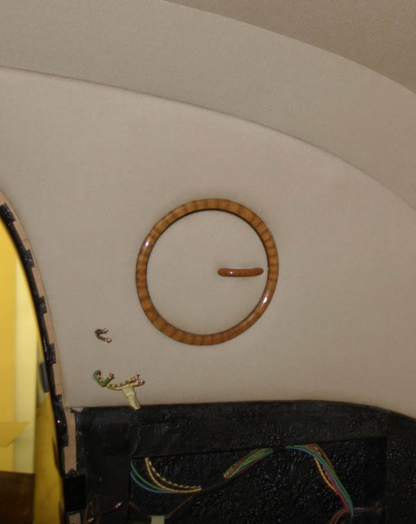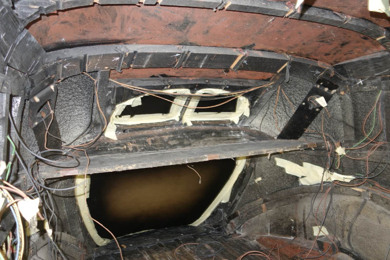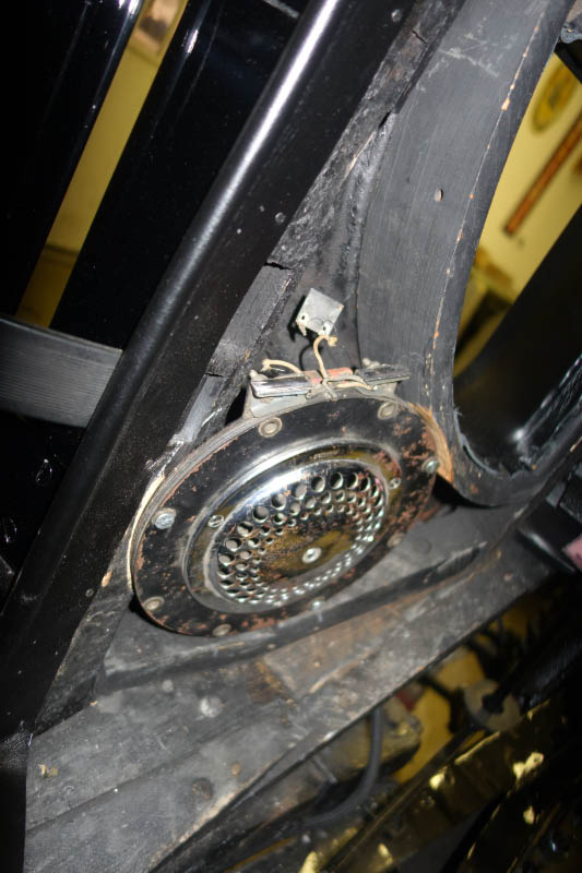 The intercom speaker is located at the lower left cowl kick panel. It's new plating is reflecting the rest of the interior area.