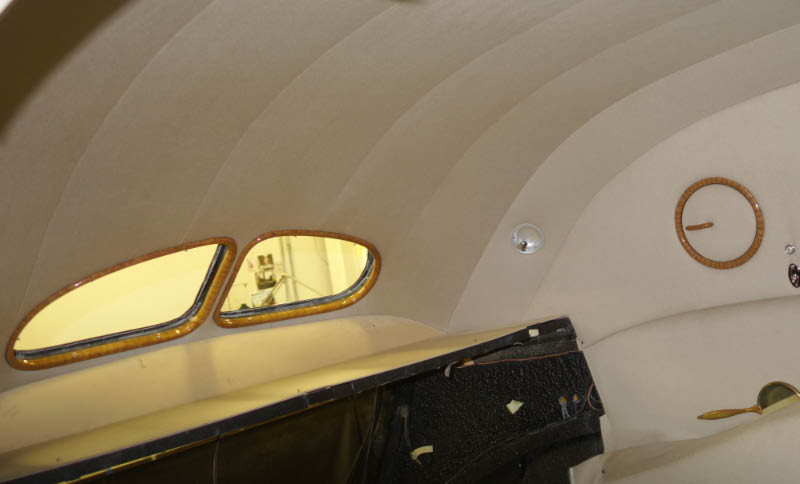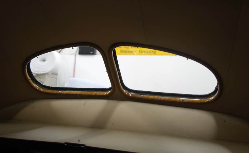The new headliner can be viewed here and restored wood rear window trim is in place - no glass has been installed yet .Compare this with the below photo taken in February 2014.