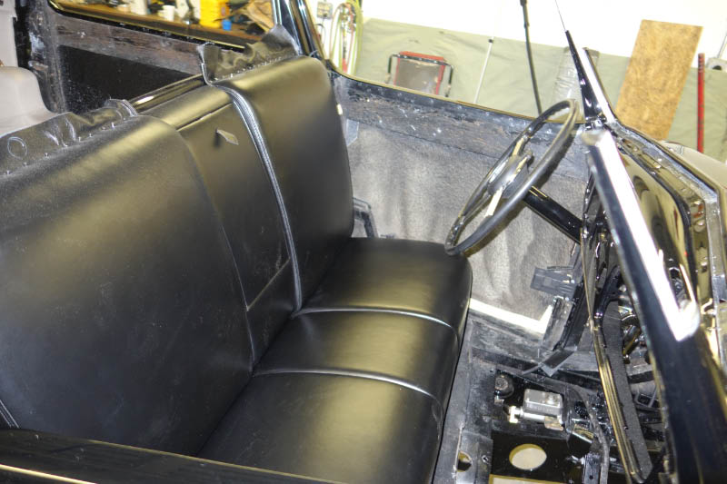 The front seat cushions are in place and the area around them is in the process of being trimmed.