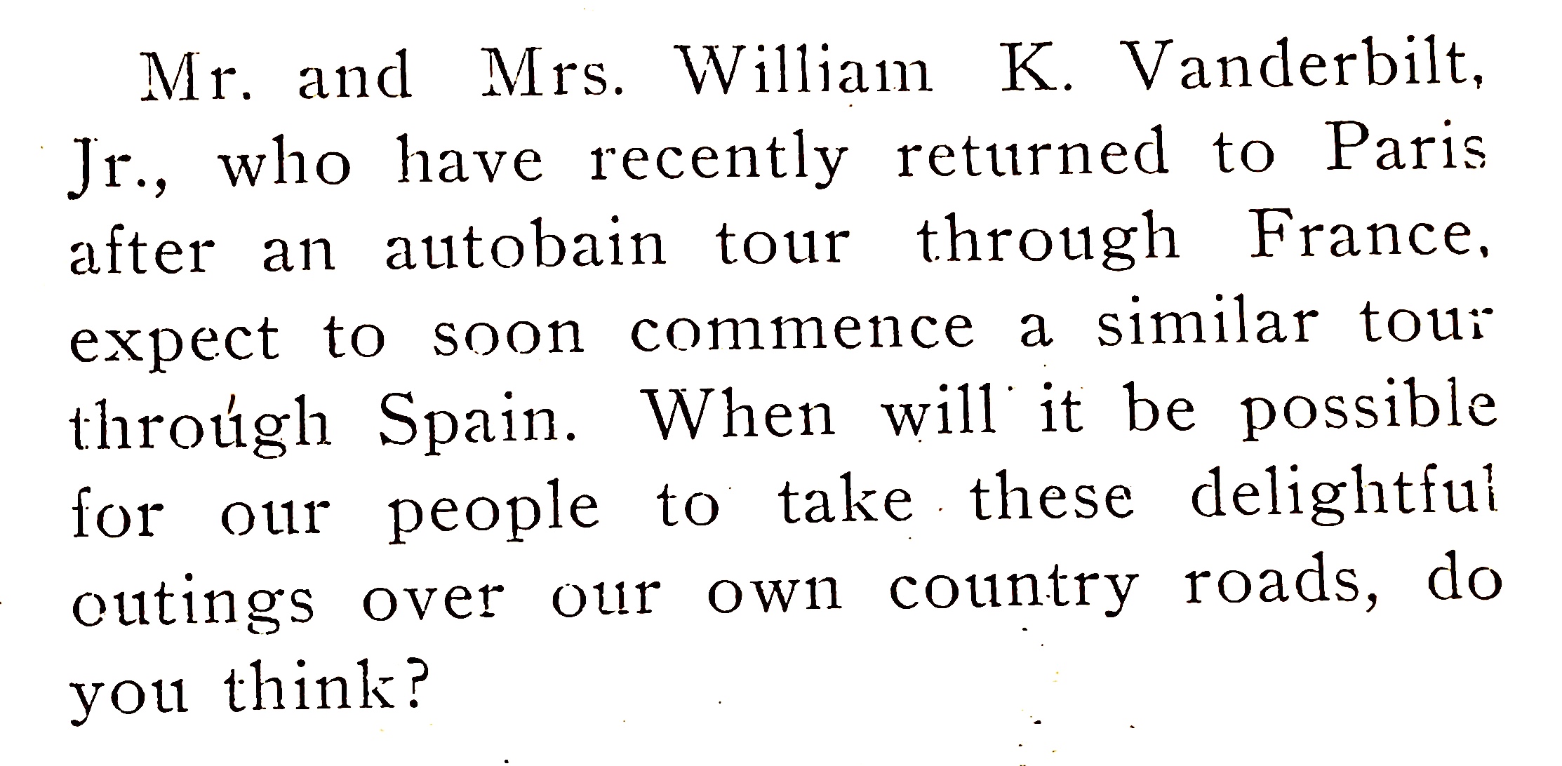 Perhaps Willie K. read this article and agreed that good country roads were needed in America. (The Autobain Feb., 1900)