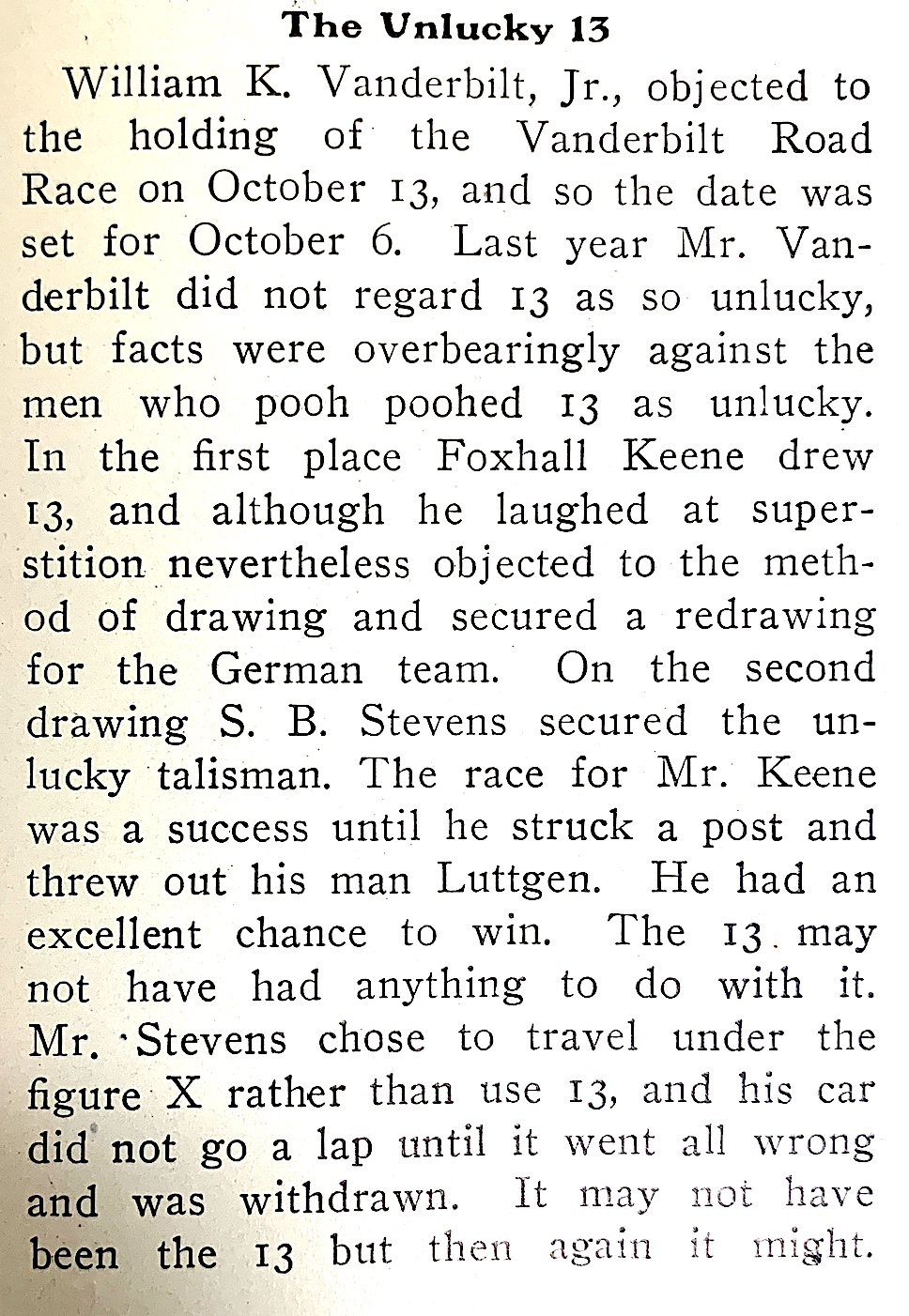 Was the 1906 Vanderbilt Cup Race originally scheduled for October 13? (The Automobile Jul., 1906)