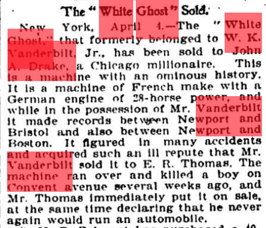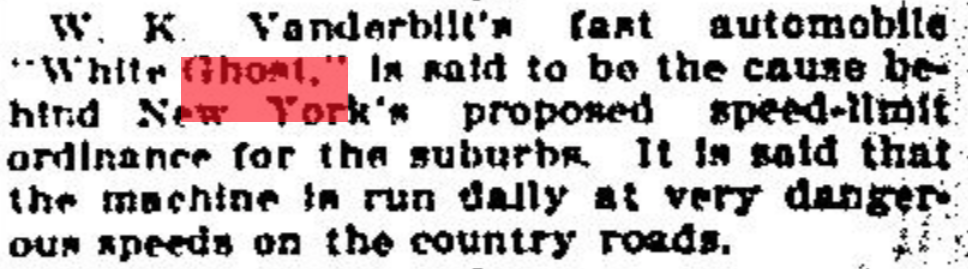 The "White Ghost" (or perhaps its driver) also contributed to New York's enactment of speed limits. (Buffalo Evening News May 18, 1901)