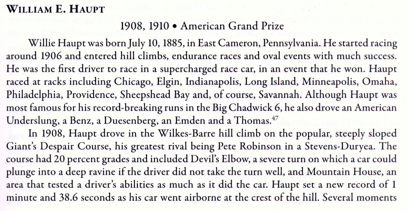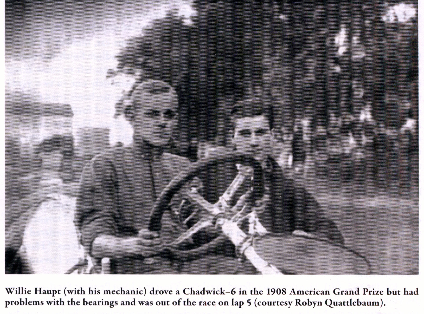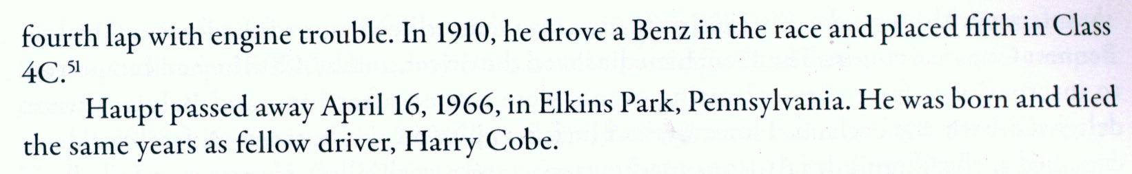Driver of the Week is William (Willie) H. Haupt who drove the Chadwick "Big Six", the first supercharged racing car, to a 10th place finish in the 1908 Vanderbilt Cup Race.