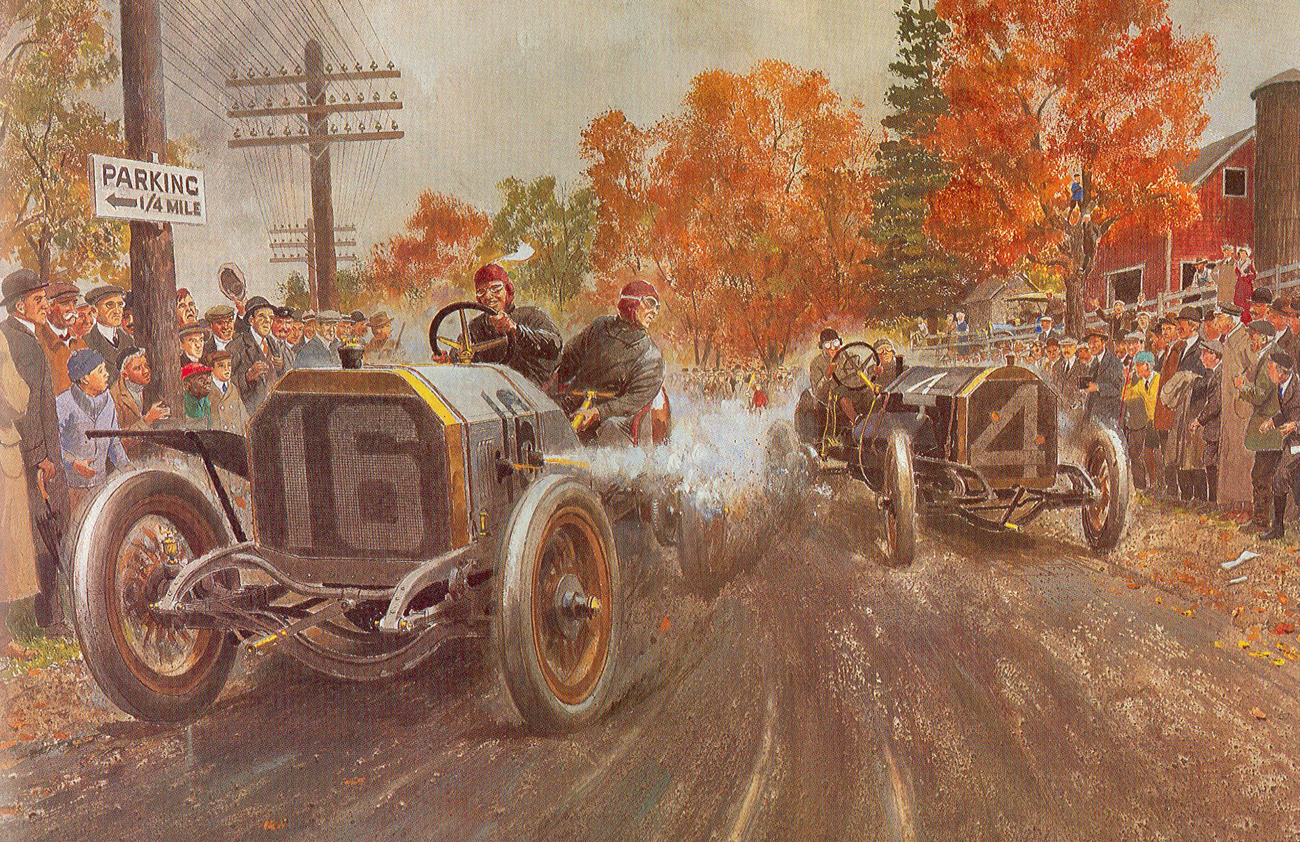 The Chadwick battling the Locomobile Old 16 as depicted in another Peter Helck classic.