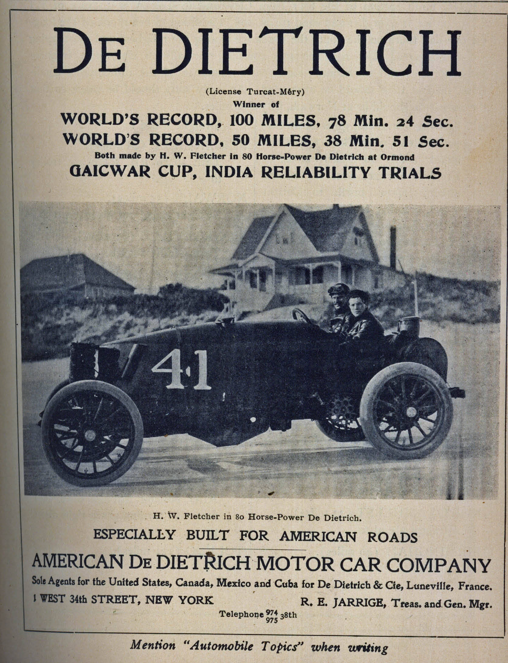 #41 De Dietrich driven by H.W. Fletcher