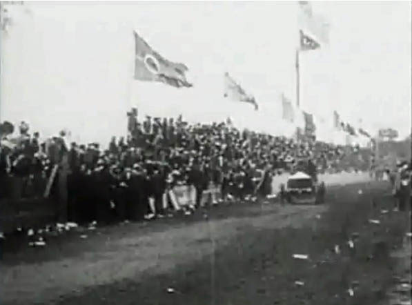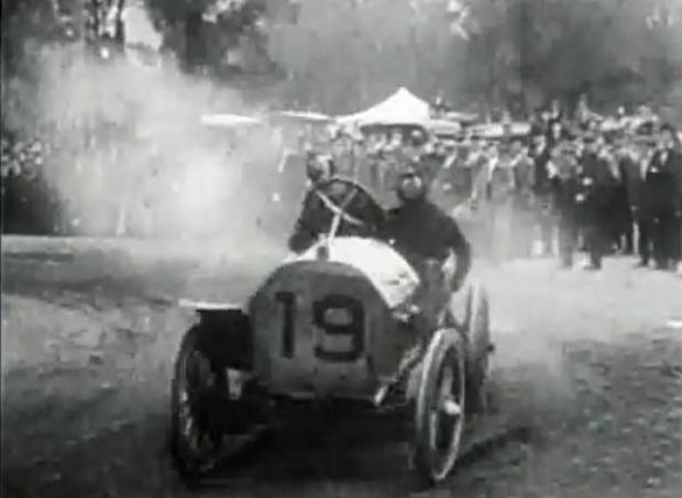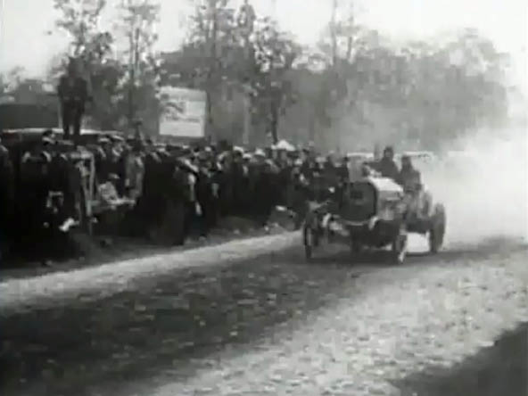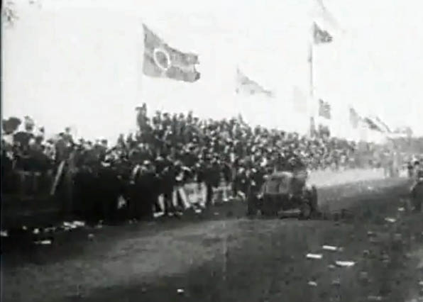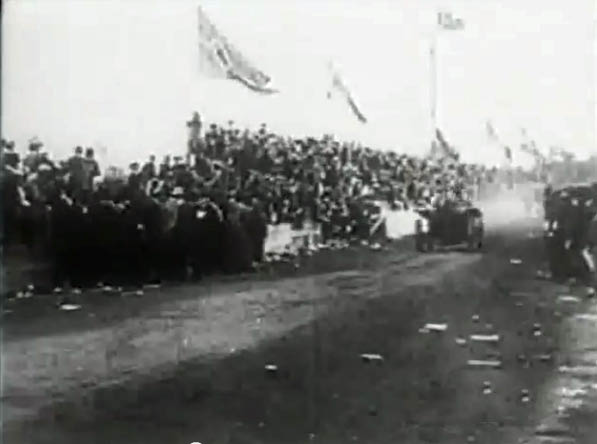 Twenty seconds of the 1906 Vanderbilt Cup Race is shown at the 3:40 mark. Can anyone identify any of the tracks or film segments shown?