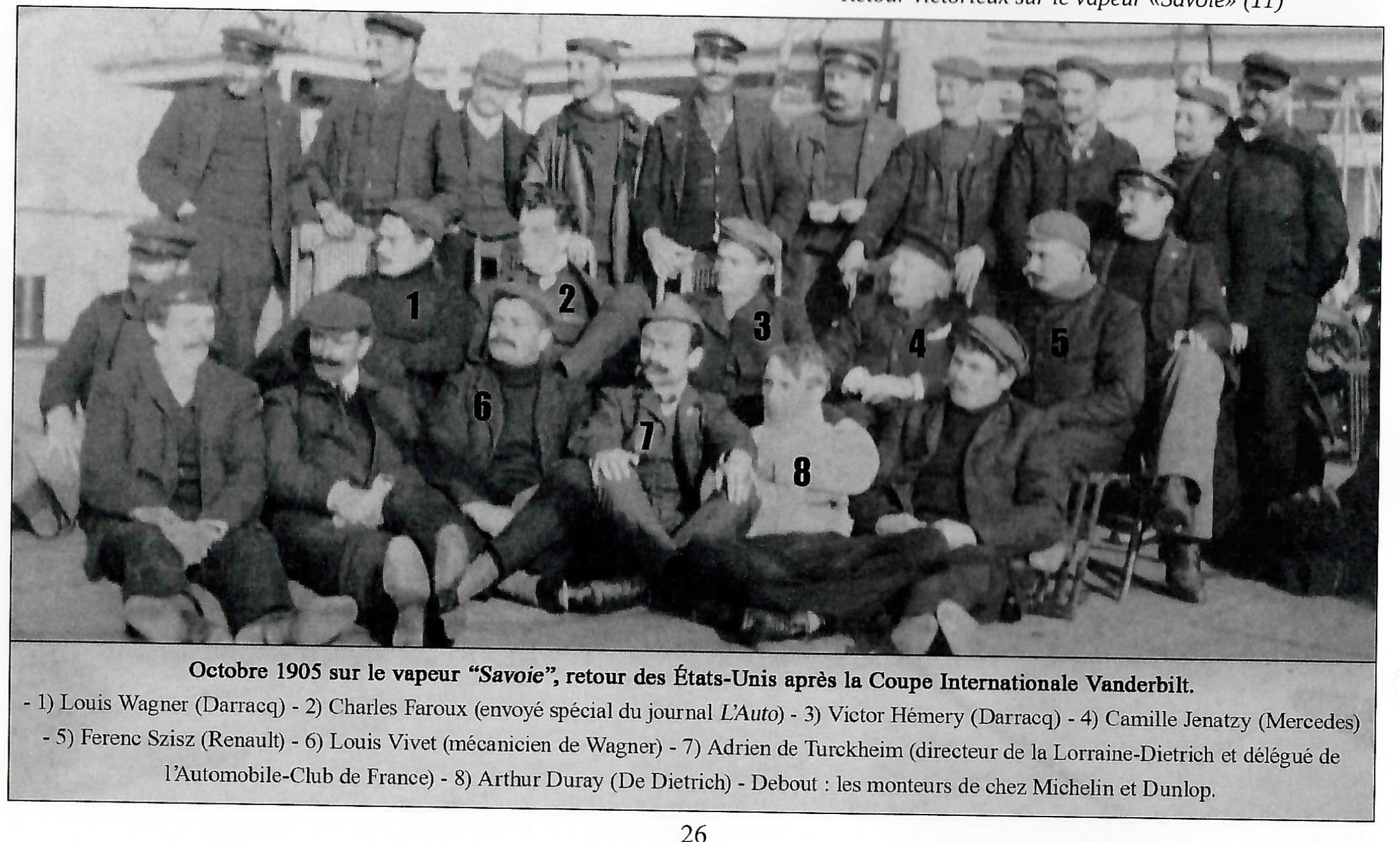 Another interesting October, 1905 photograph from the book is this group photo of many of the European Vanderbilt Cup drivers returning back home from the U.S. aboard the 'Savoie' passenger ship.