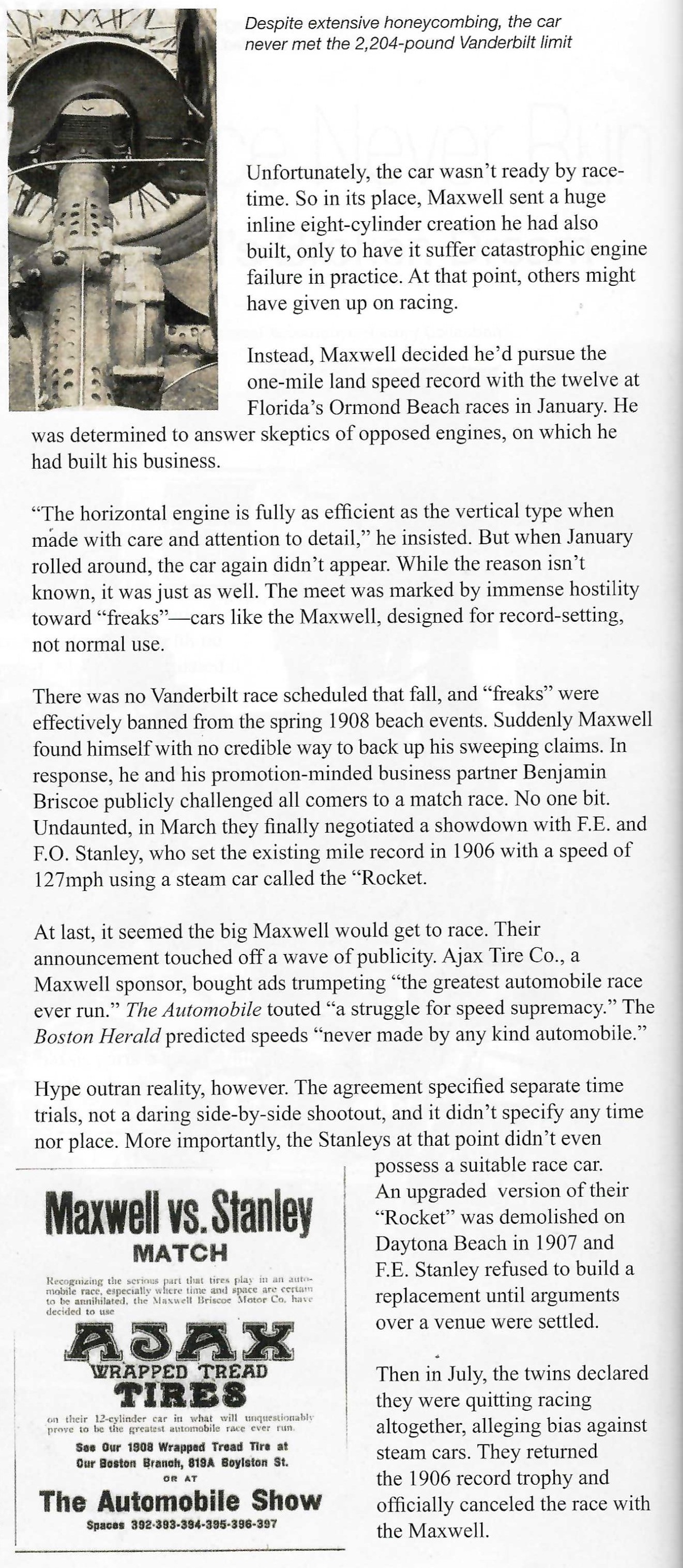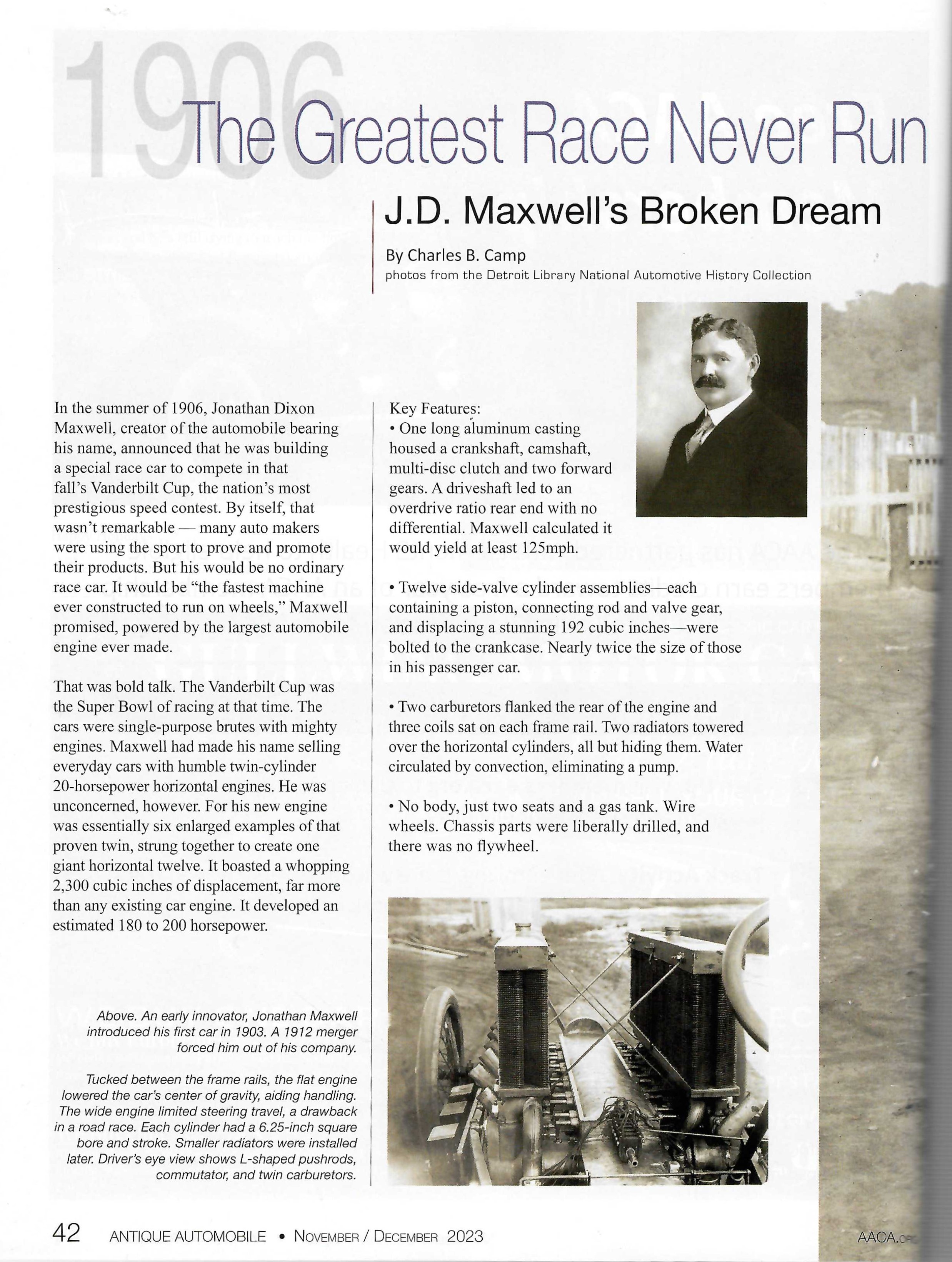 In the Nov/Dec 2023 official publication of the antique Automobile Club of America comes an article about Maxwell's hopeful 1906 12-cylider Vanderbilt Cup entry.