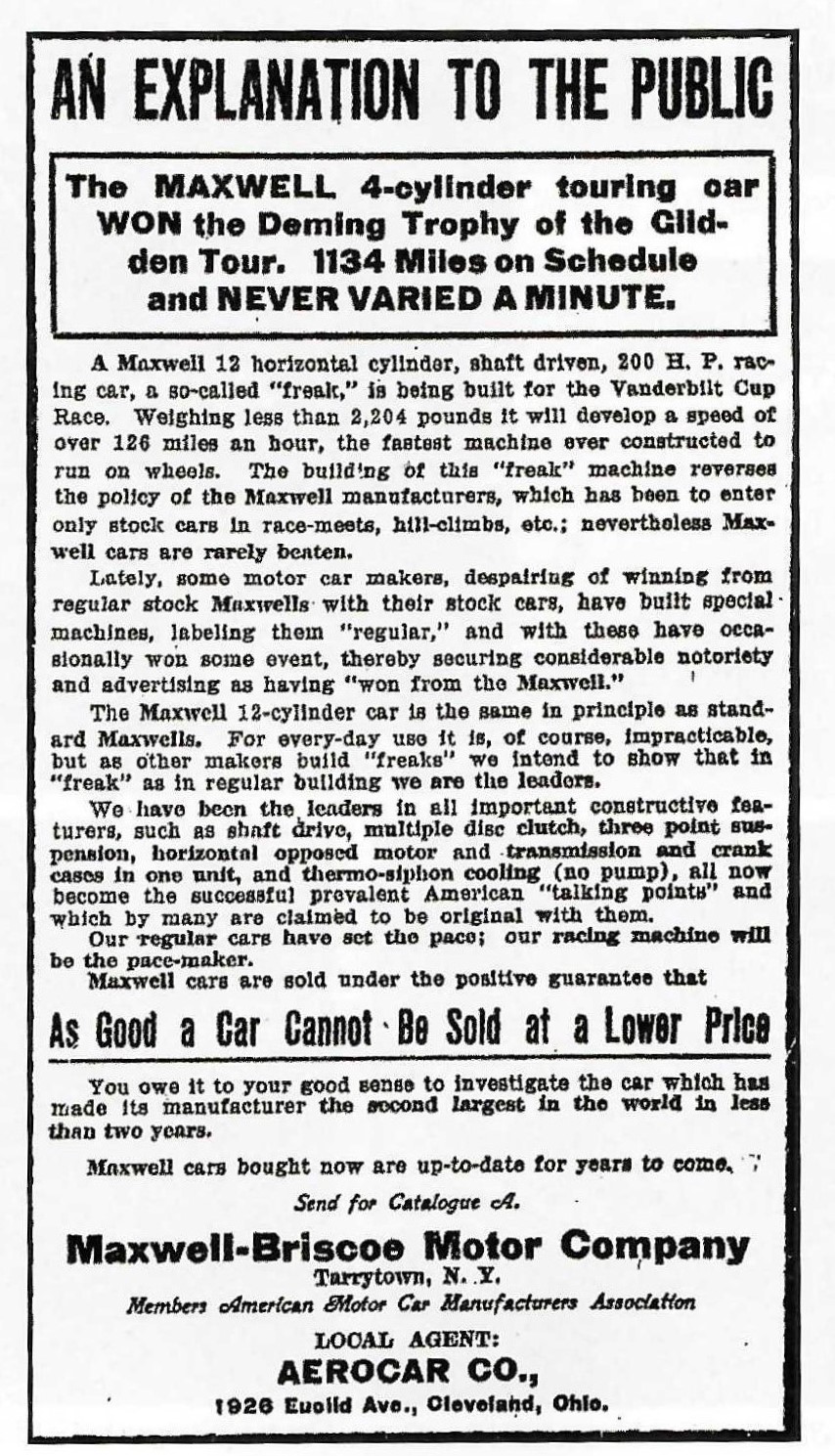 In 1906, Jonathan Maxwell promised "the fastest machine ever constructed to run on wheels" for the 1906 Vanderbilt Cup race. A bold claim for sure considering he only introduced his first car to the public 3 years earlier in 1903.