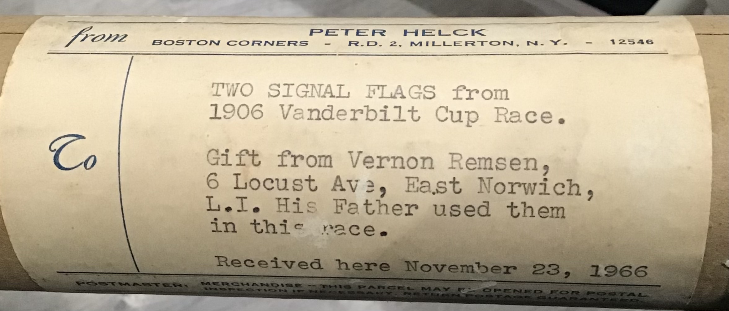 As noted, the reason for Maggie's visit was to gift a set of 1906 Vanderbilt Cup Race flags that were found in her father's New Jersey home.