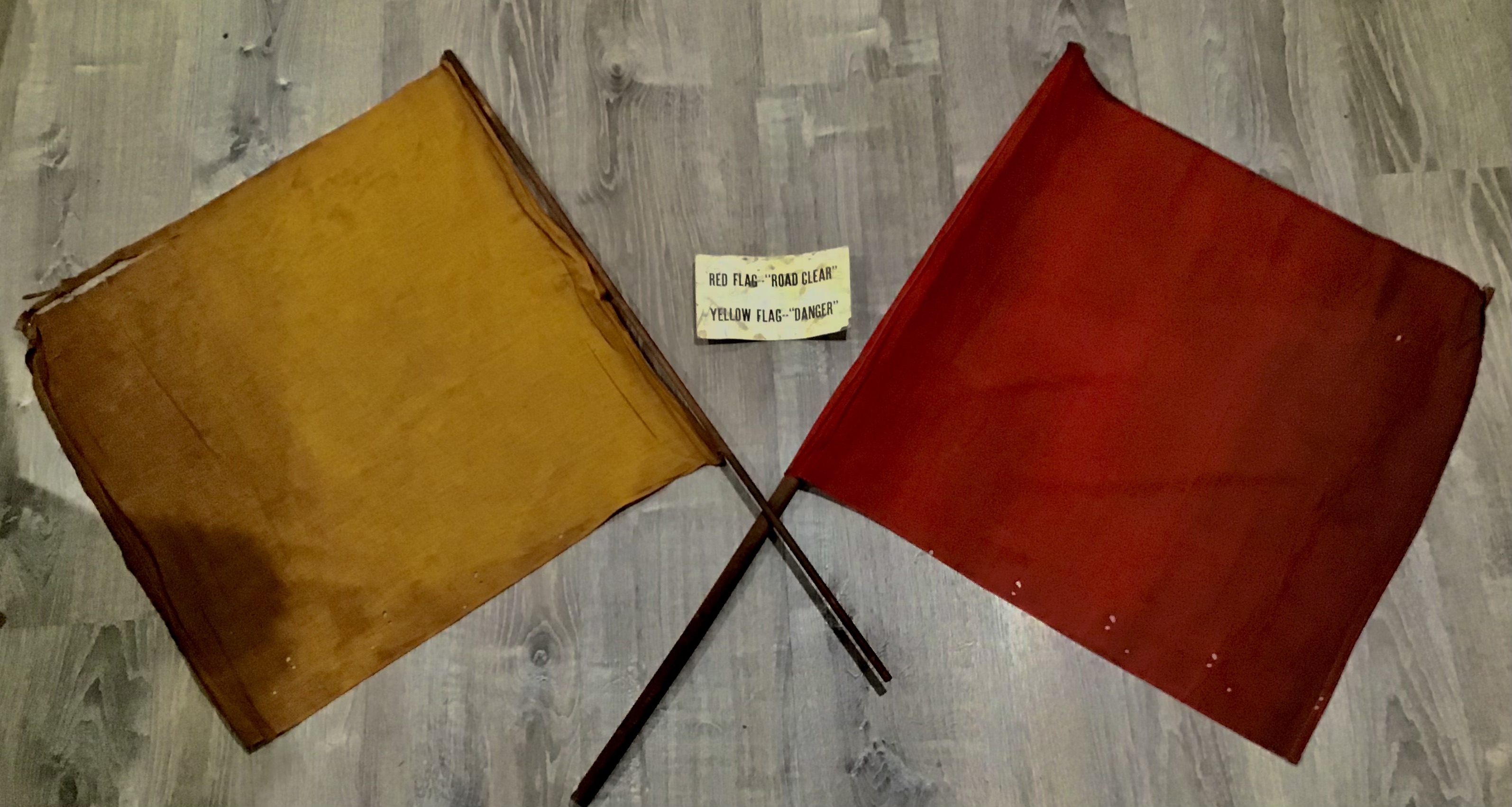 "TWO SIGNAL FLAGS from 1906 Vanderbilt Cup Race.