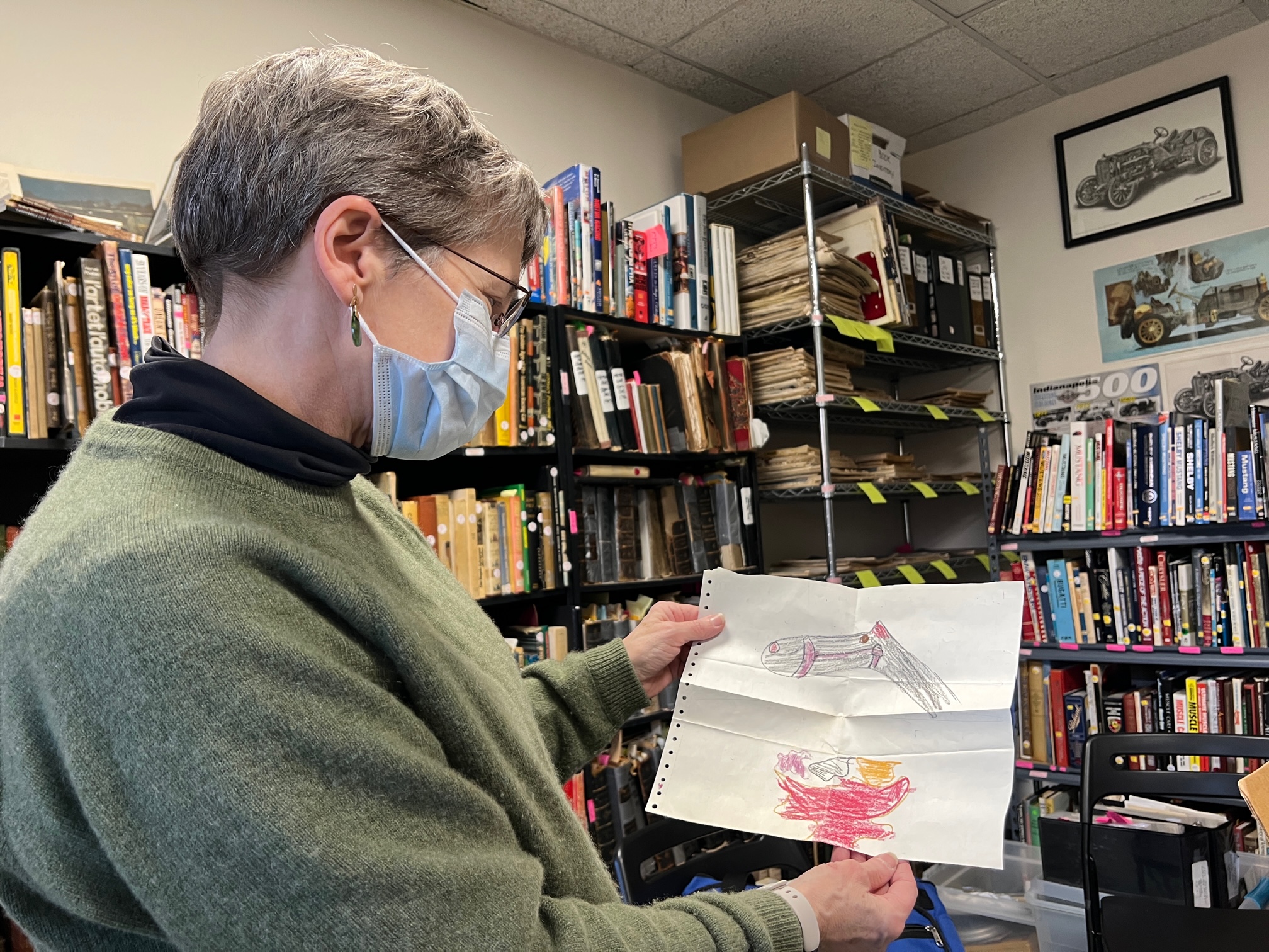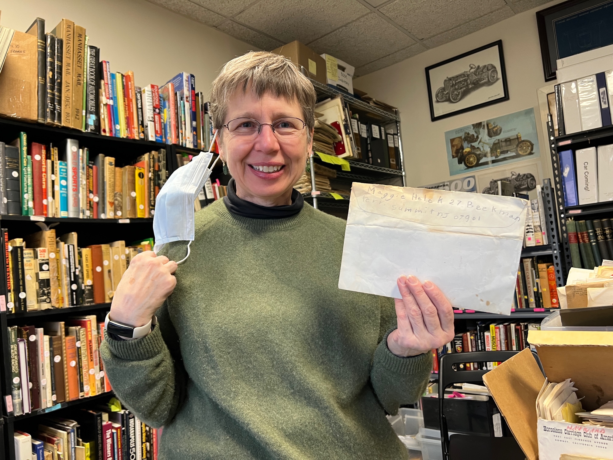 Maggie Helck, granddaughter of Peter Helck and daughter of Jerry Helck, came to visit the Waterfront at Roslyn to donate some important Vanderbilt Cup Race memorabilia and look through her grandfather's archives.