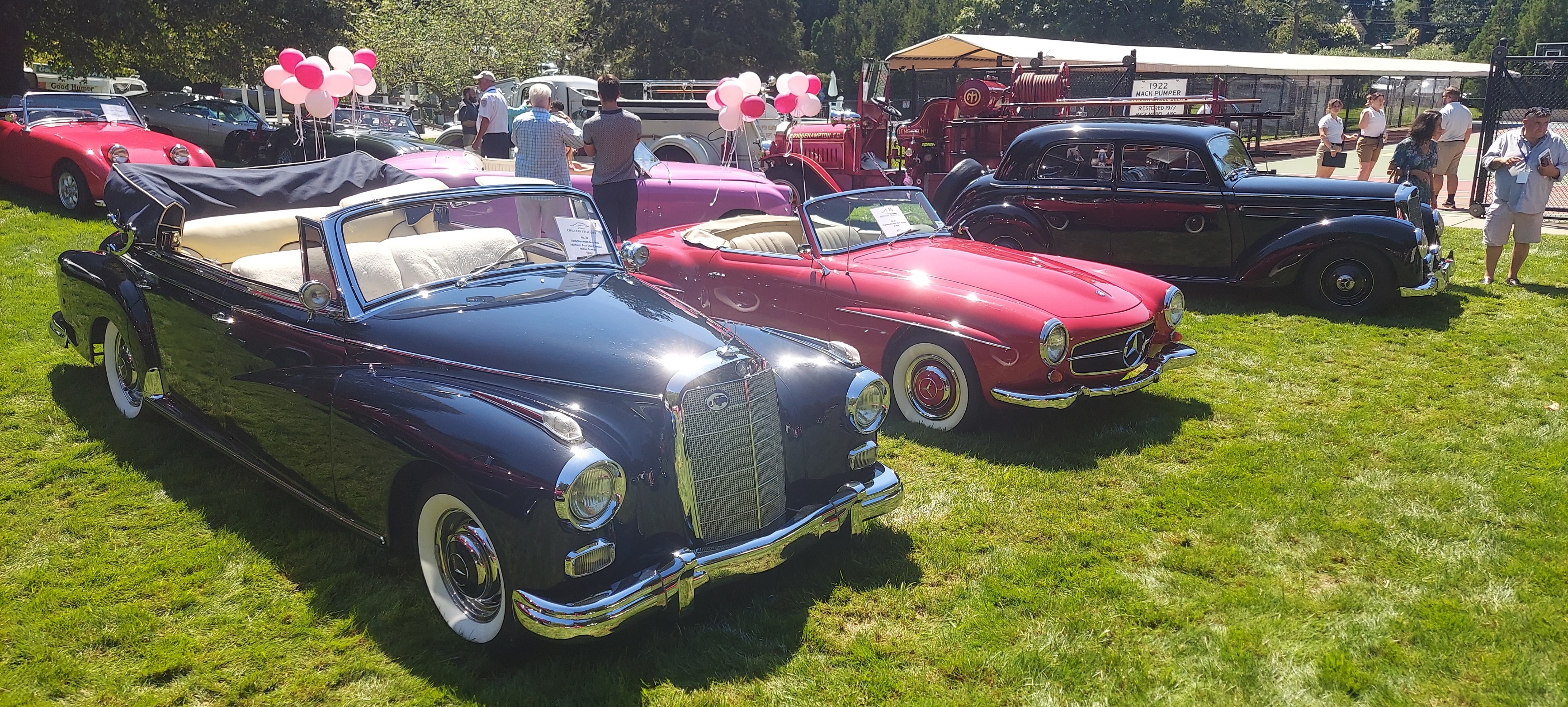 More Benz eye candy with its category winning 1960 300b Adenauer 4-door Cabrio, 1959 190 SL Roadster and '53 220