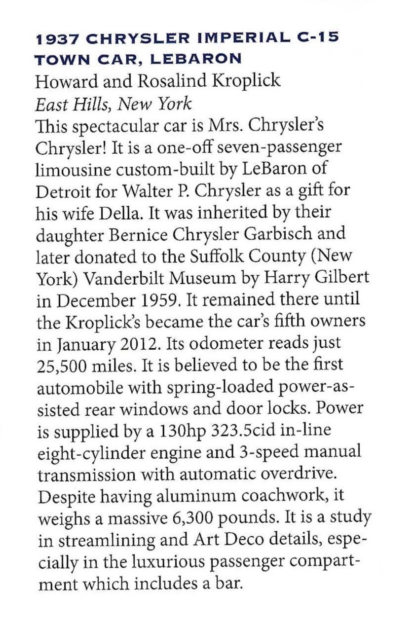 Chrysler's Chrysler was awarded the Gail and Henry Petronis Award for 'Most Elegant Closed Automobile"