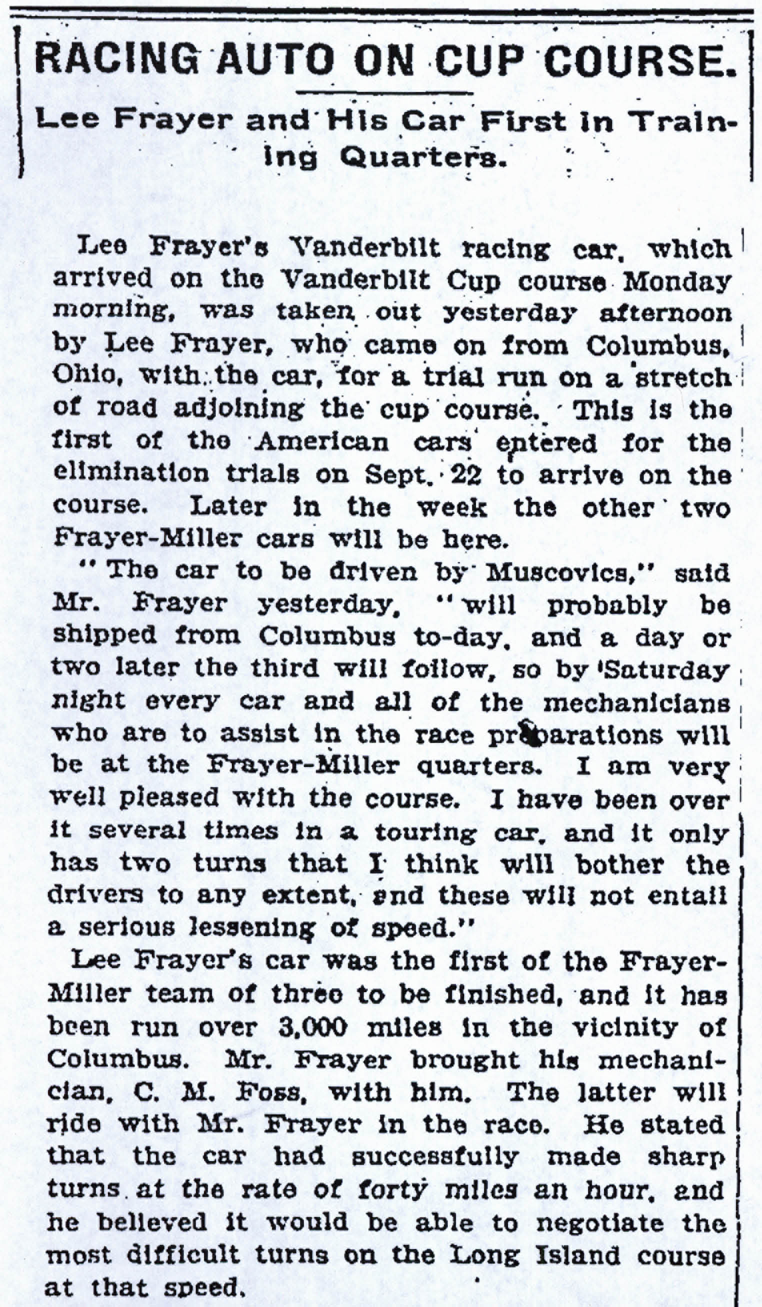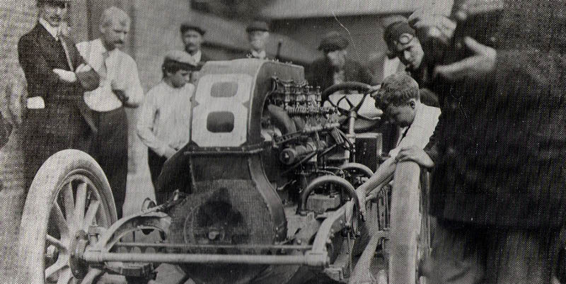For the 1906 American Elimination Trial, Lee Frayer's mechanician was 16-year old Eddie Rickenbacker.