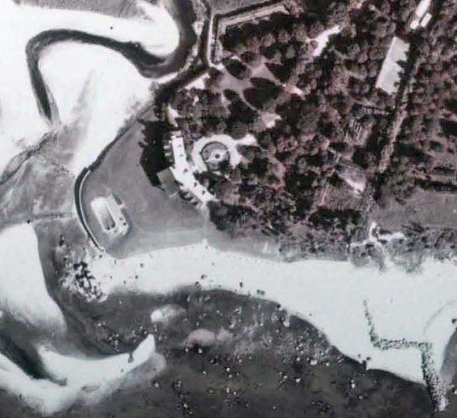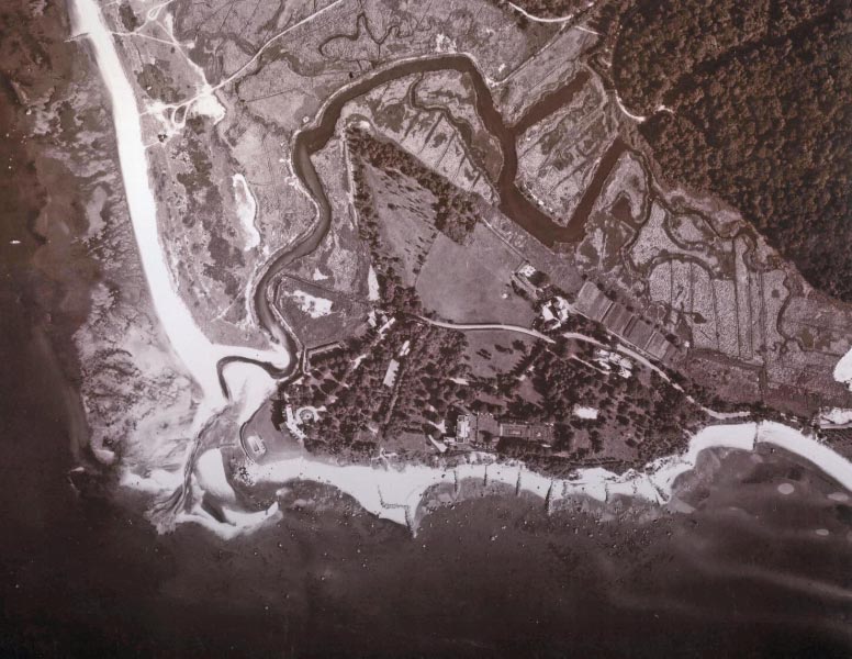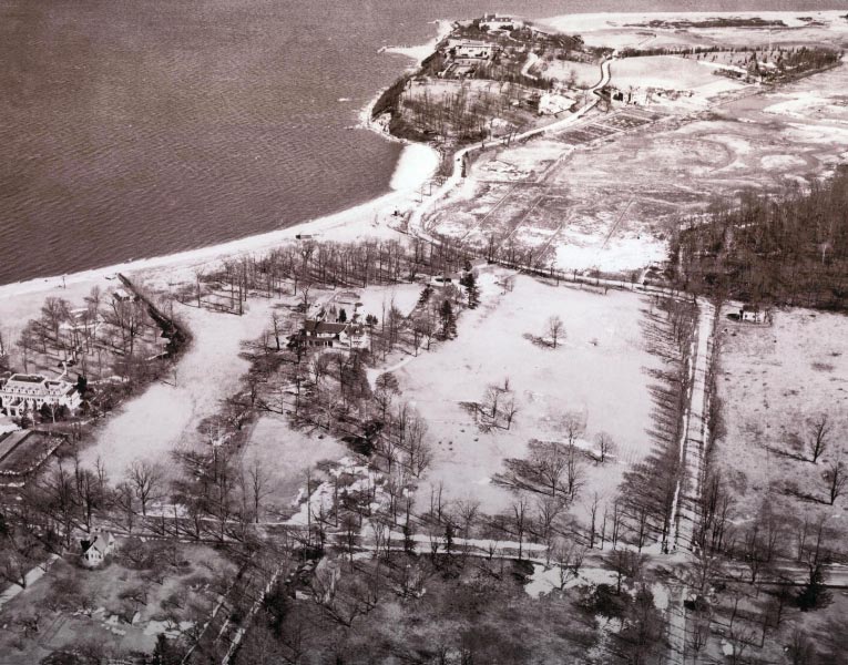 View looking east. Sands Point Lighthouse is to the north of the mansion.