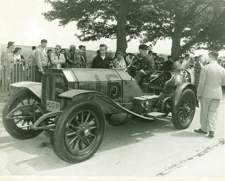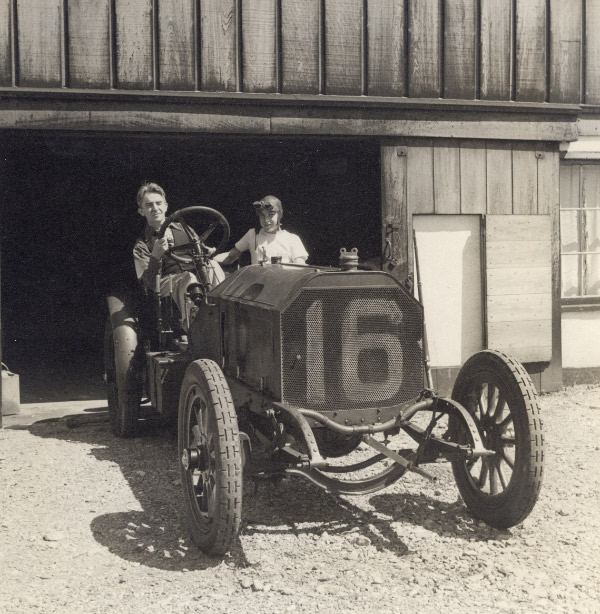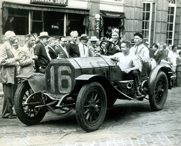 Old 16 Locomobile, the winner of the 1908 Vanderbilt Cup Race, was owned by the Helck family for 55 years from 1942 to 1997. Nobody was photographed more frequently with this historic racer than Jerry Helck.
