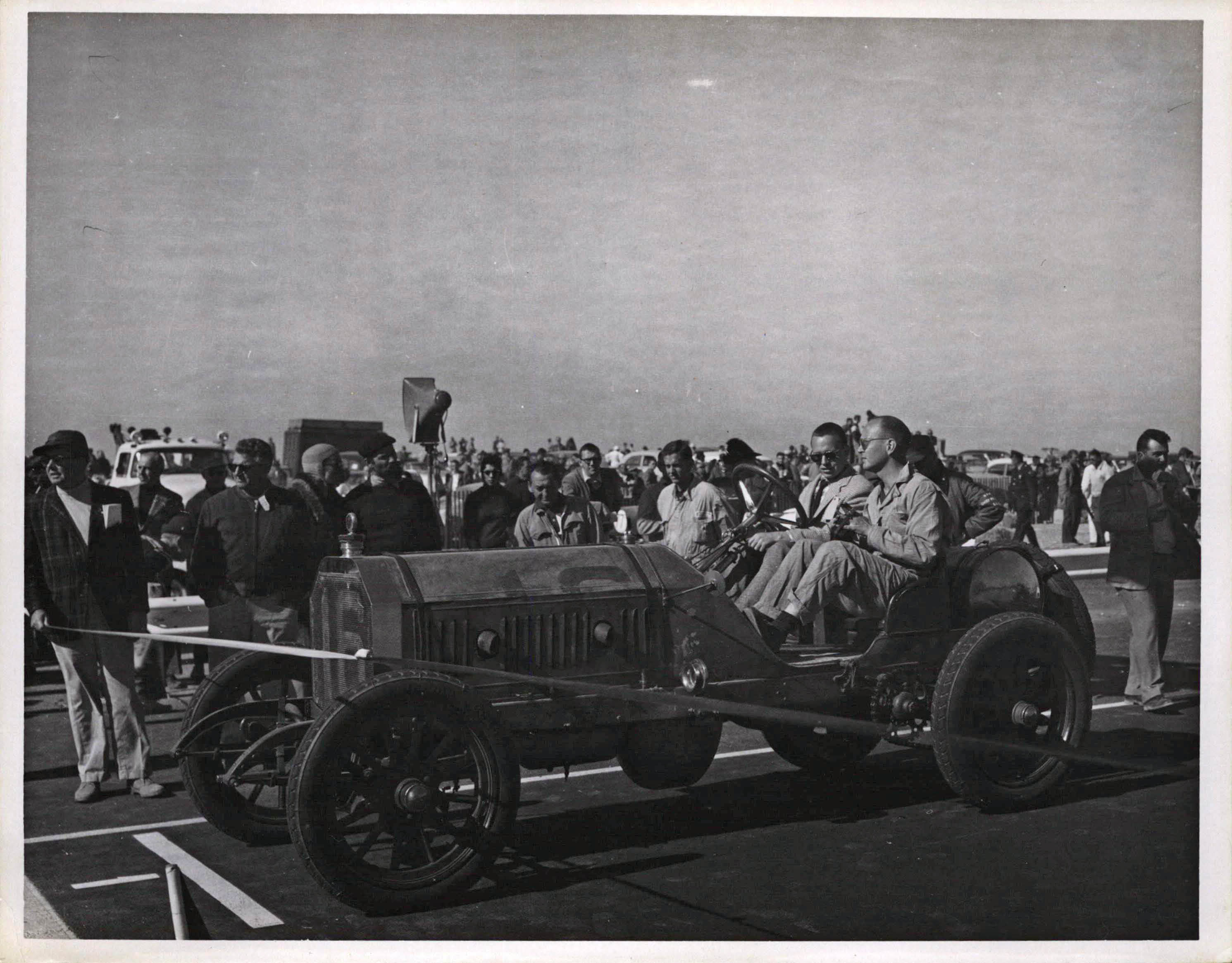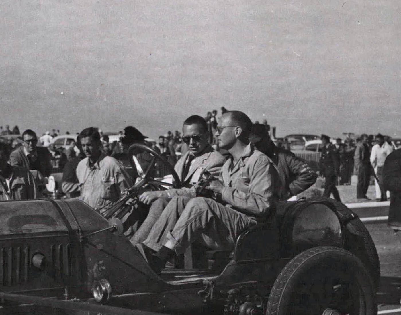 Peter Helck's caption: "A grand car, a great driver and a questionable crew". This photo was a gift to Helck's artist friend Lewis Daniel. Photo courtesy of Tim Helck and Jonathan Daniel.