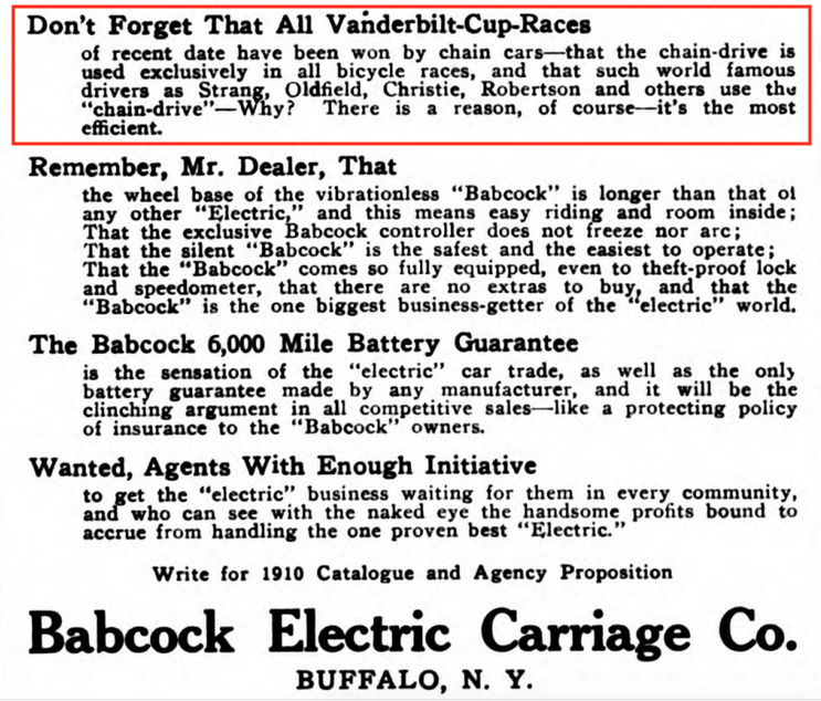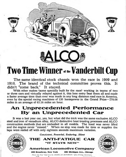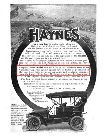 As shown in previous posts, advertisers often mentioned the Vanderbilt Cup Races or the Long Island Motor Parkway as an endorsement of their products. Here are additional examples.