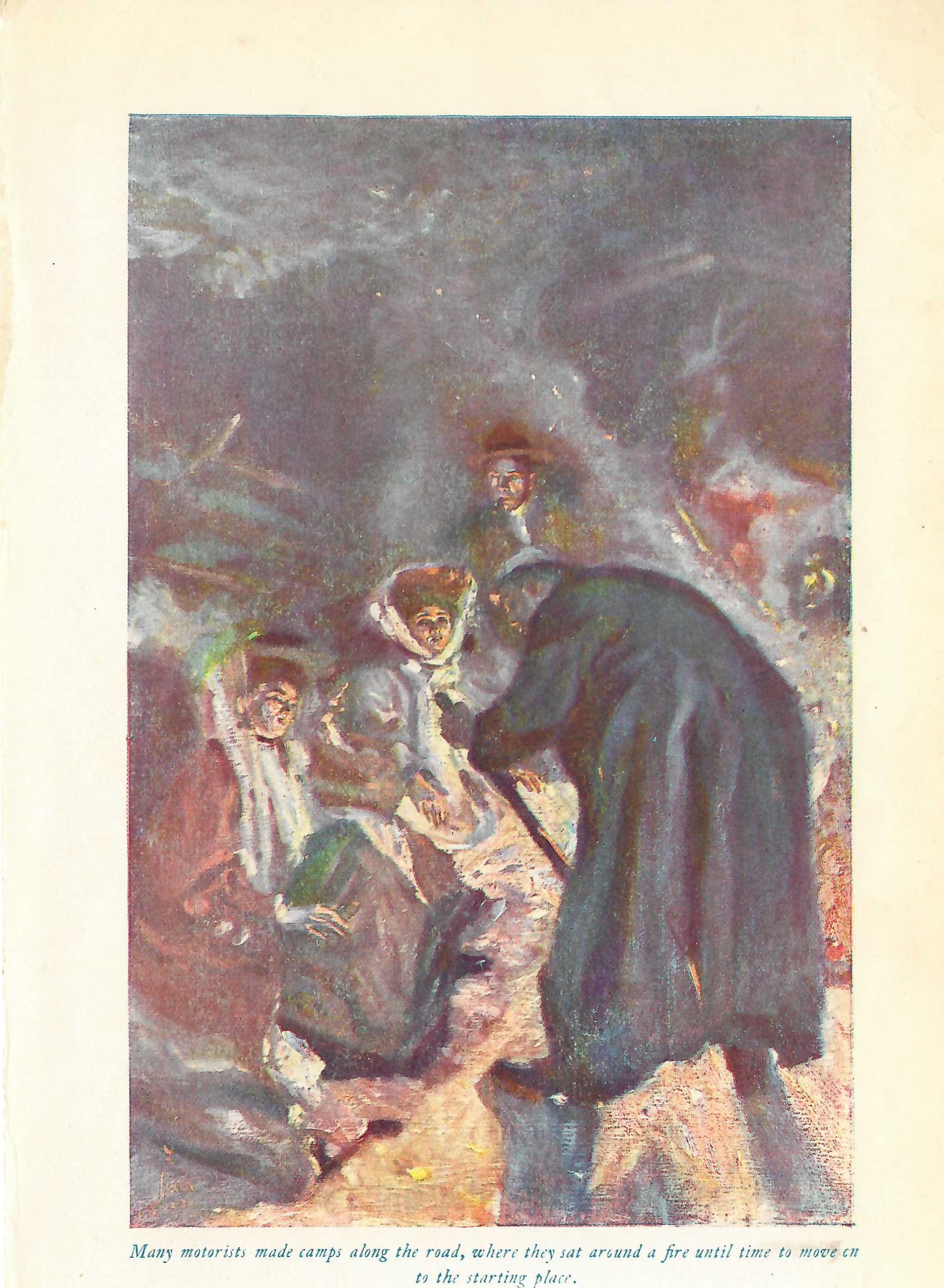 "Many motorists made camps along the road, where they sat around a fire until time to move on to the starting place."