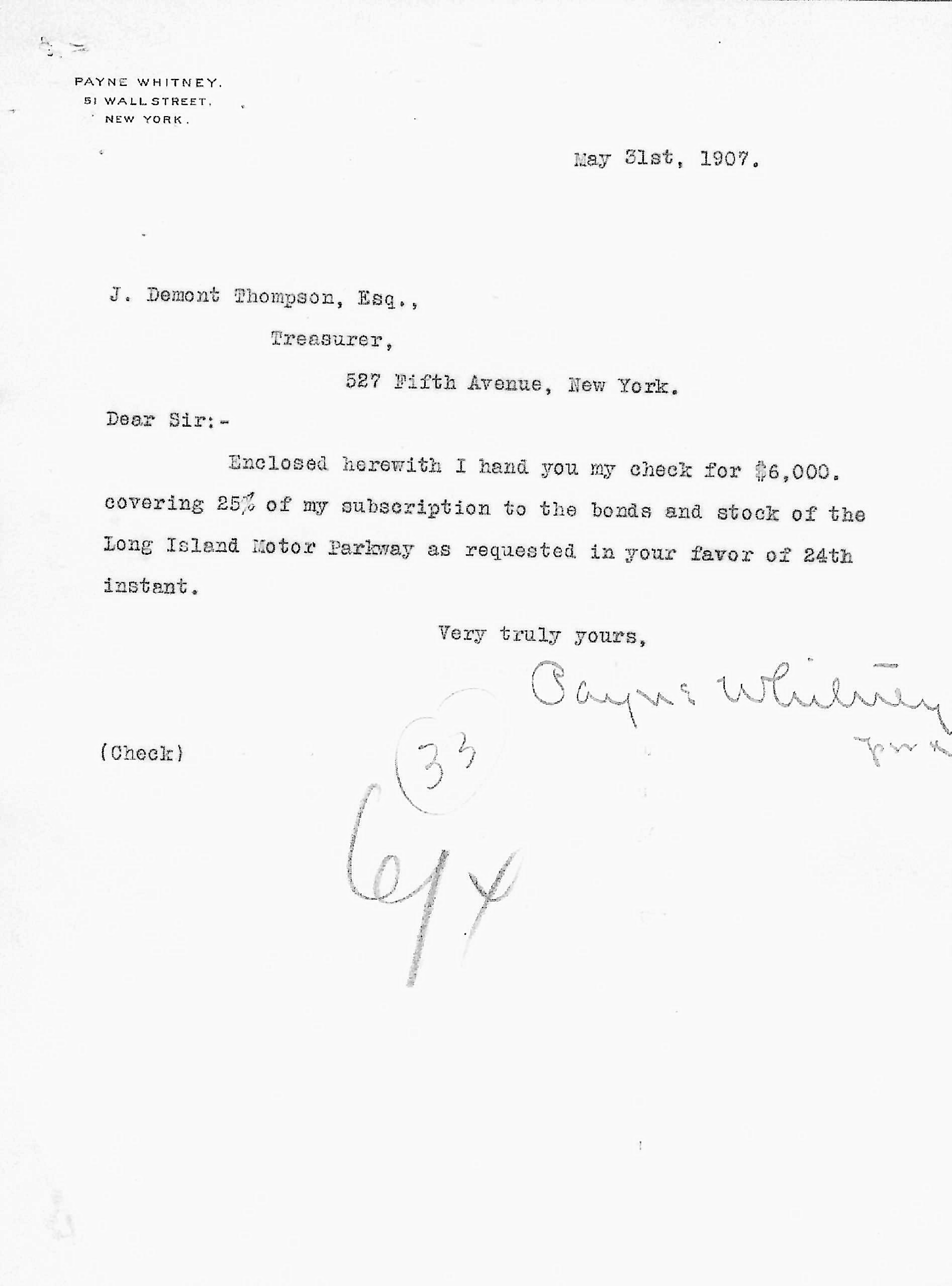 Initial payments were made following a request by the Finance Committee on May 24, 1907. During the course of construction additional payments were requested, usually 25% of a person's full investment. Documents courtesy of the Vanderbilt Museum in Centerport.