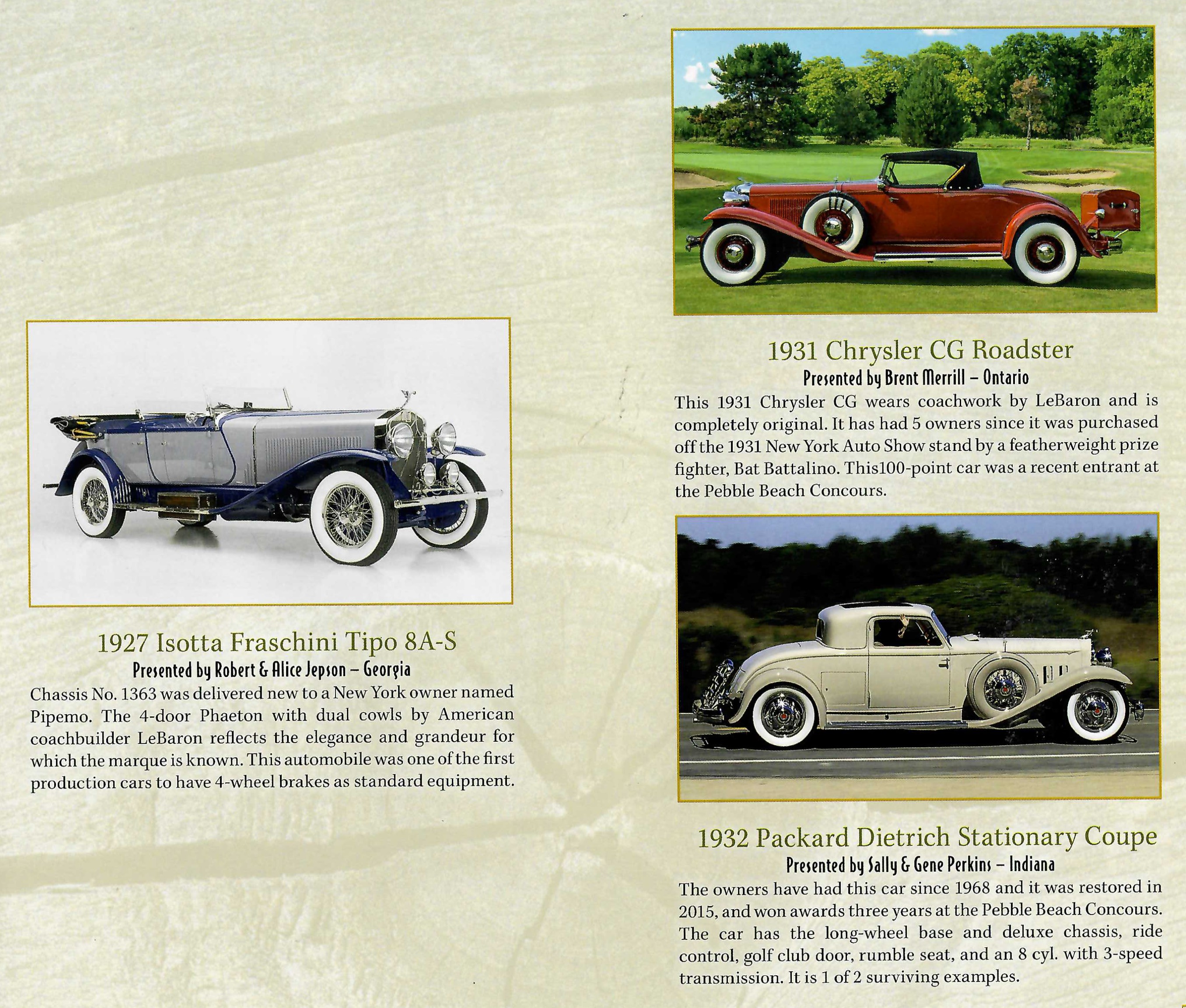 Others in the Coach Built Classics class included a 1927 Isotta Fraschini Tipo 8A-S, 1931 Chrysler CG Roadster, 1932 Packard Dietrich Stationary Coupe...