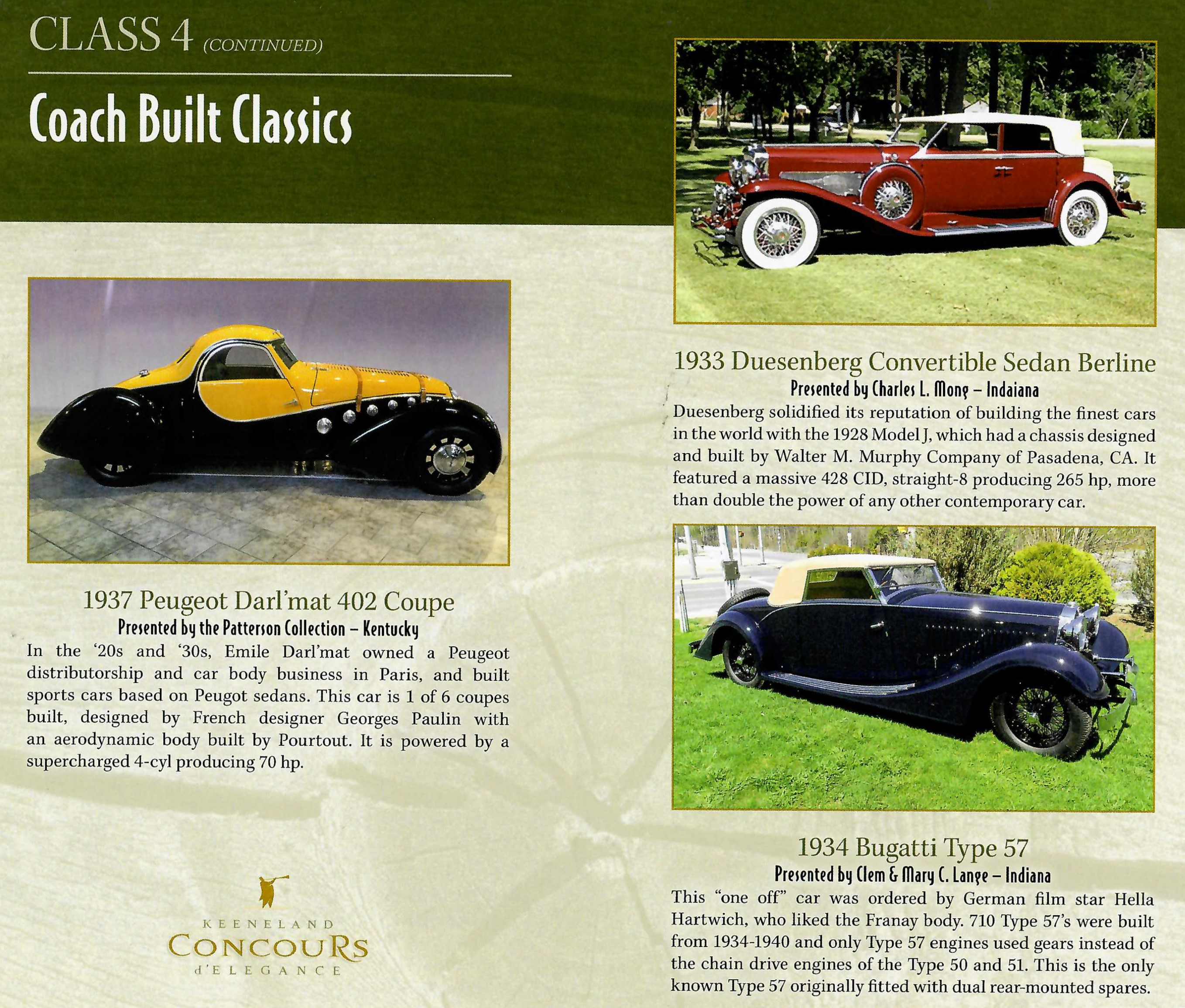 ...a 1937 Peugeot Darl'mat 402 Coupe, the 'Best in Show' winning 1934 Bugatti Type 57 and lastly, a 1933 Duesenberg Convertible Sedan Berline.