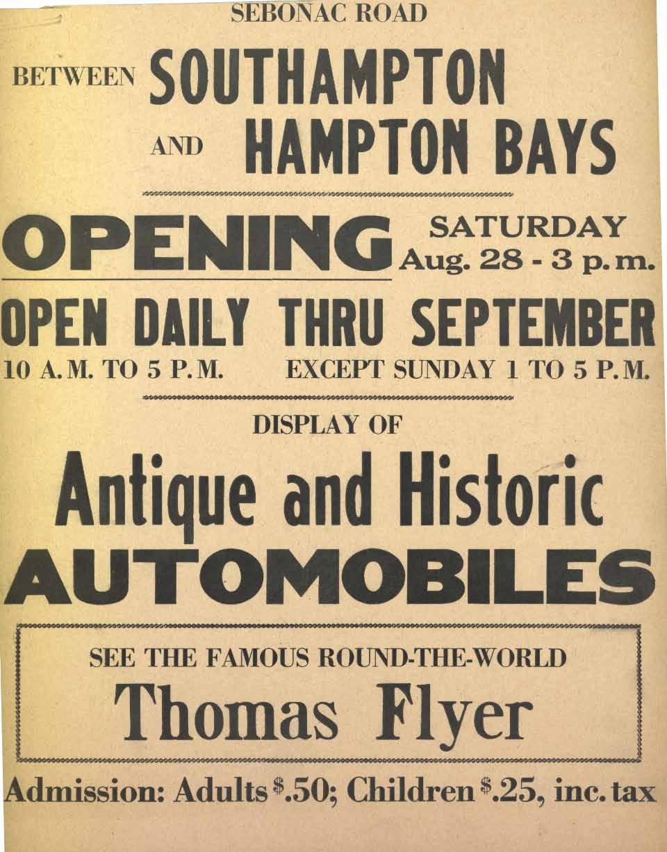 A poster promoting the Thomas Flyer and an opening day of the museum.