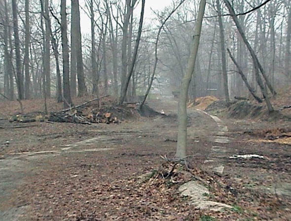 Heading toward Northern State Parkway, the northern embankment of the bridge is still very much intact.