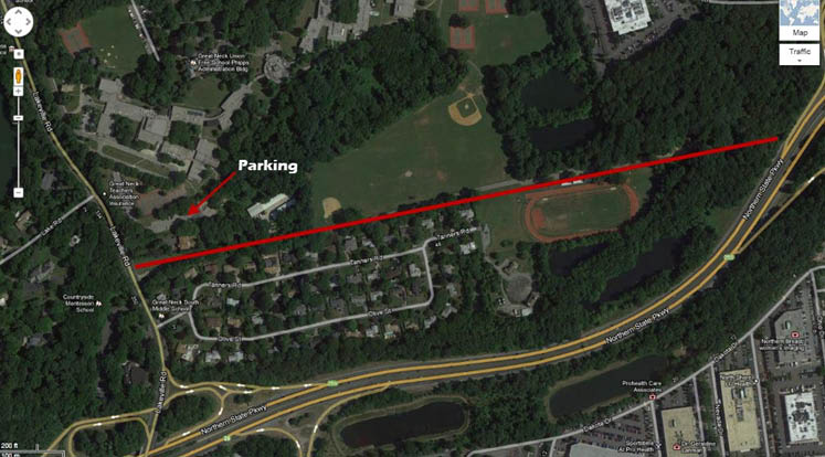 Parking for the Lake Success Trail can be found behind the Great Neck Middle School.