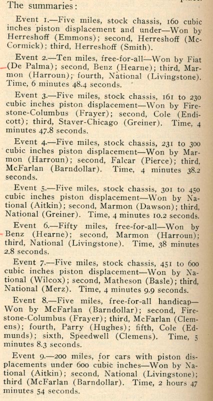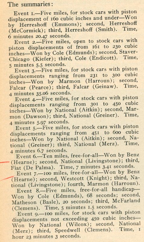 Following the Elgin race, a series of races were held at the nearby Indianapolis Speedway. As seen in the race results published in the Automobile Topics, the Alco did not compete in either the September 3rd or 5th events.