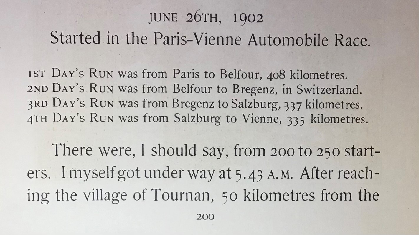 The race he was participating in was the Paris to Vienna run which included the 1902 edition of the James Gordon Bennett Cup.